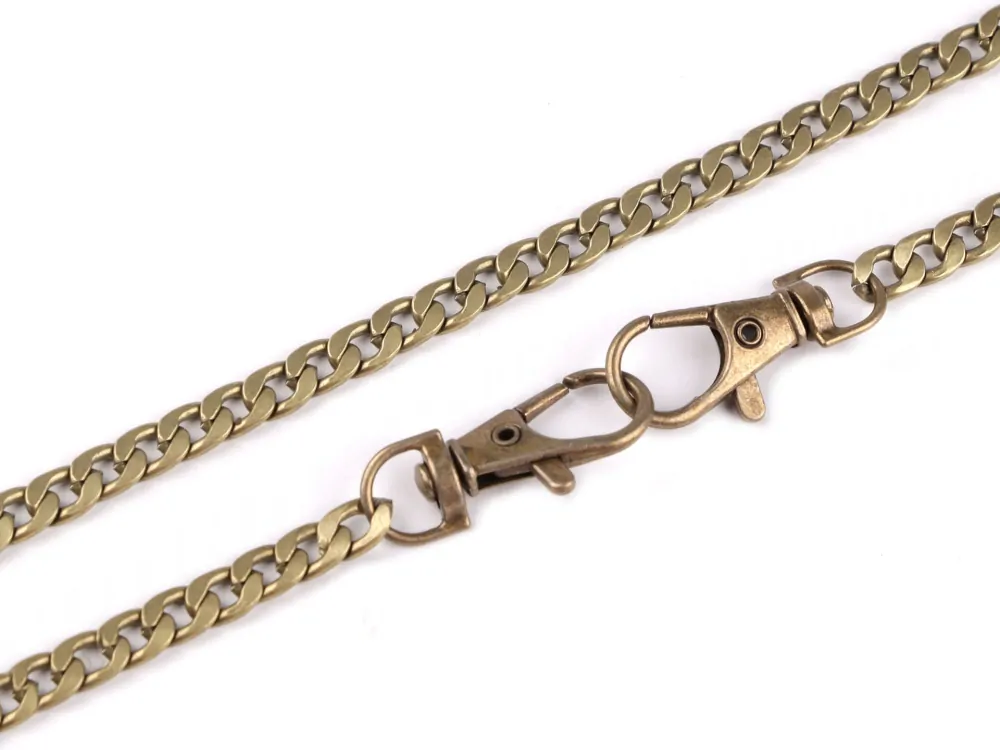120 cm retiazka - PLOCHÁ s karabínami - staromosadz kovová na kabelky
