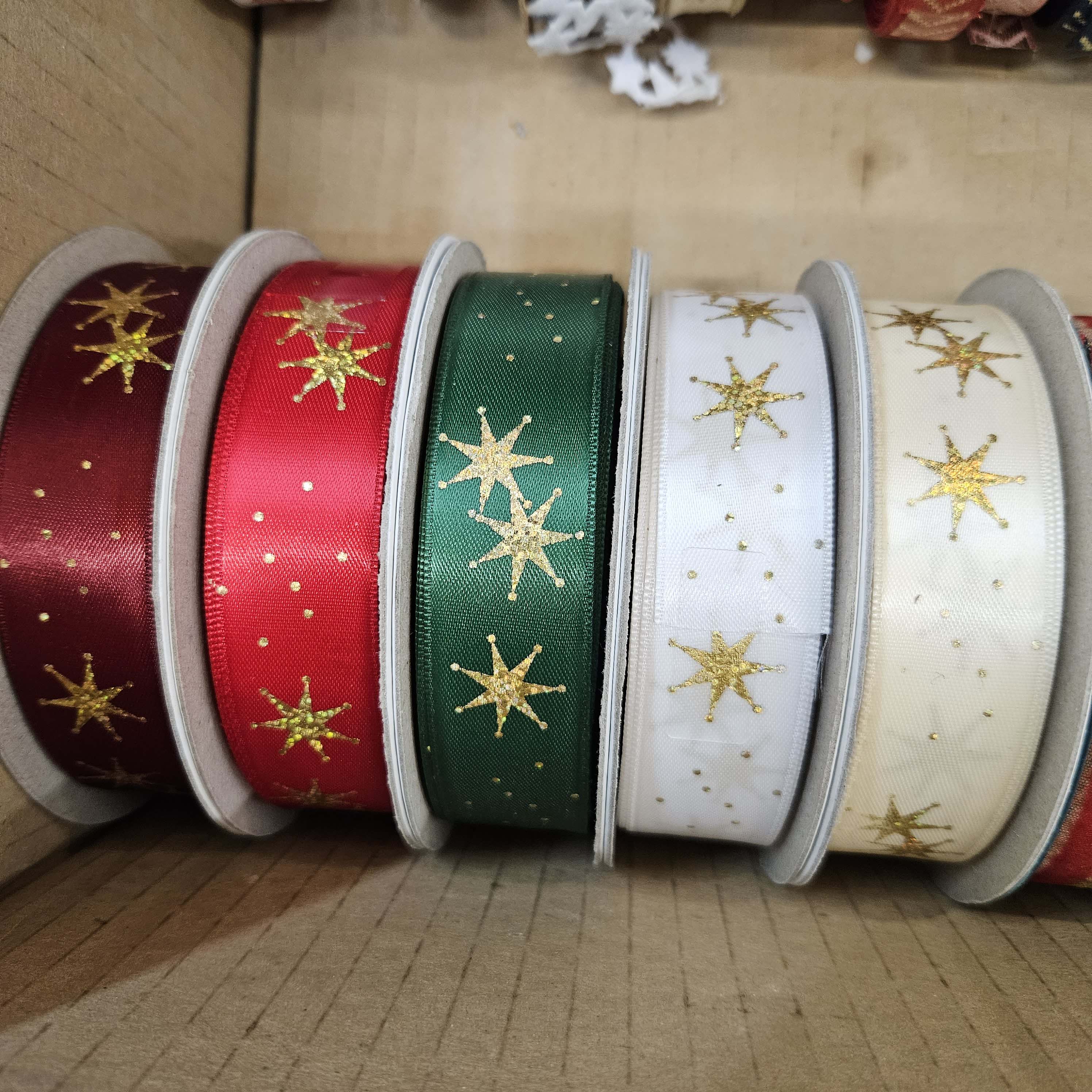 2,5cm vianočná stuha - BIELA so zlatými hviezdami / meterSkladom1,00 EUR/ ks0,81 EUR bez DPH