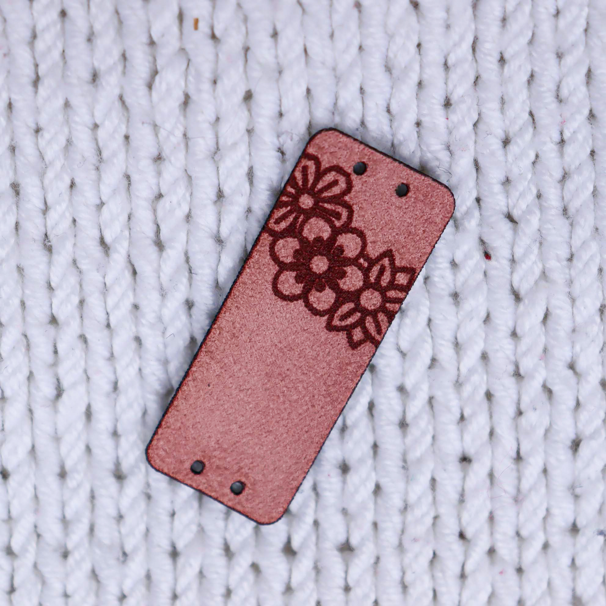 - A1 - Ružové kvety štítok / nápis ekokoža cca 5x2cm