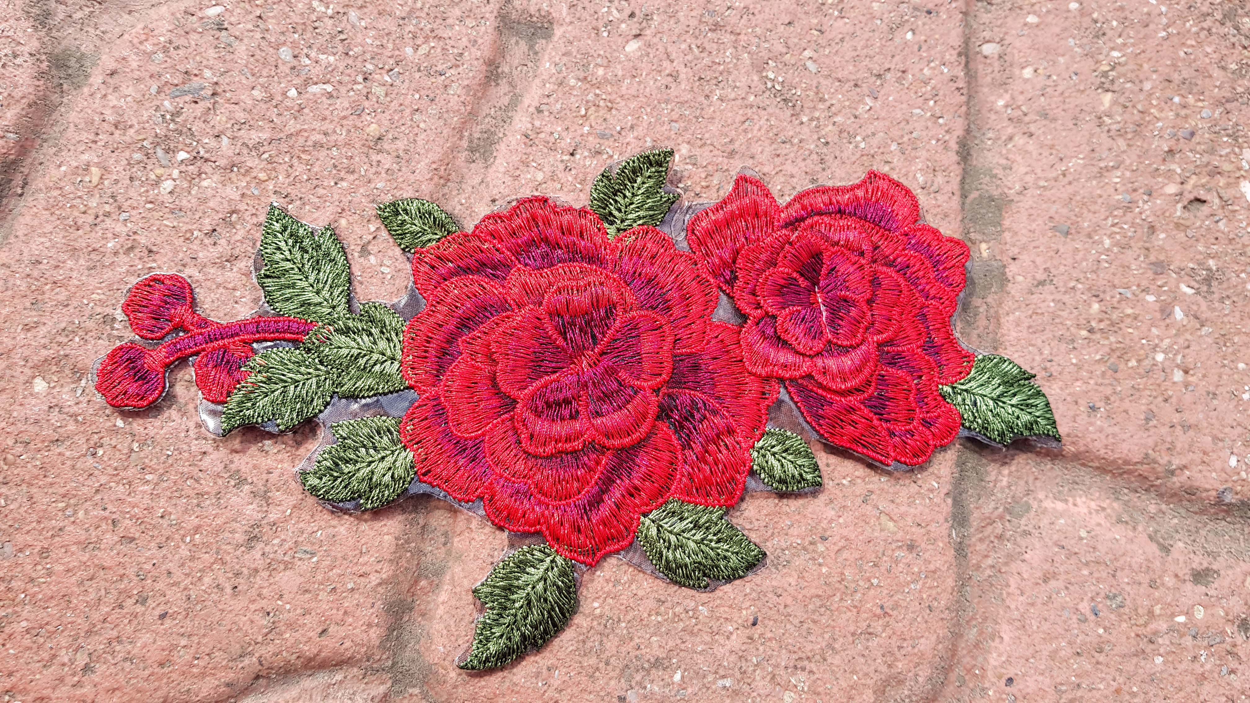 Aplikácia nášivka kvet 2x červená ruža (cca 25cm šírka)