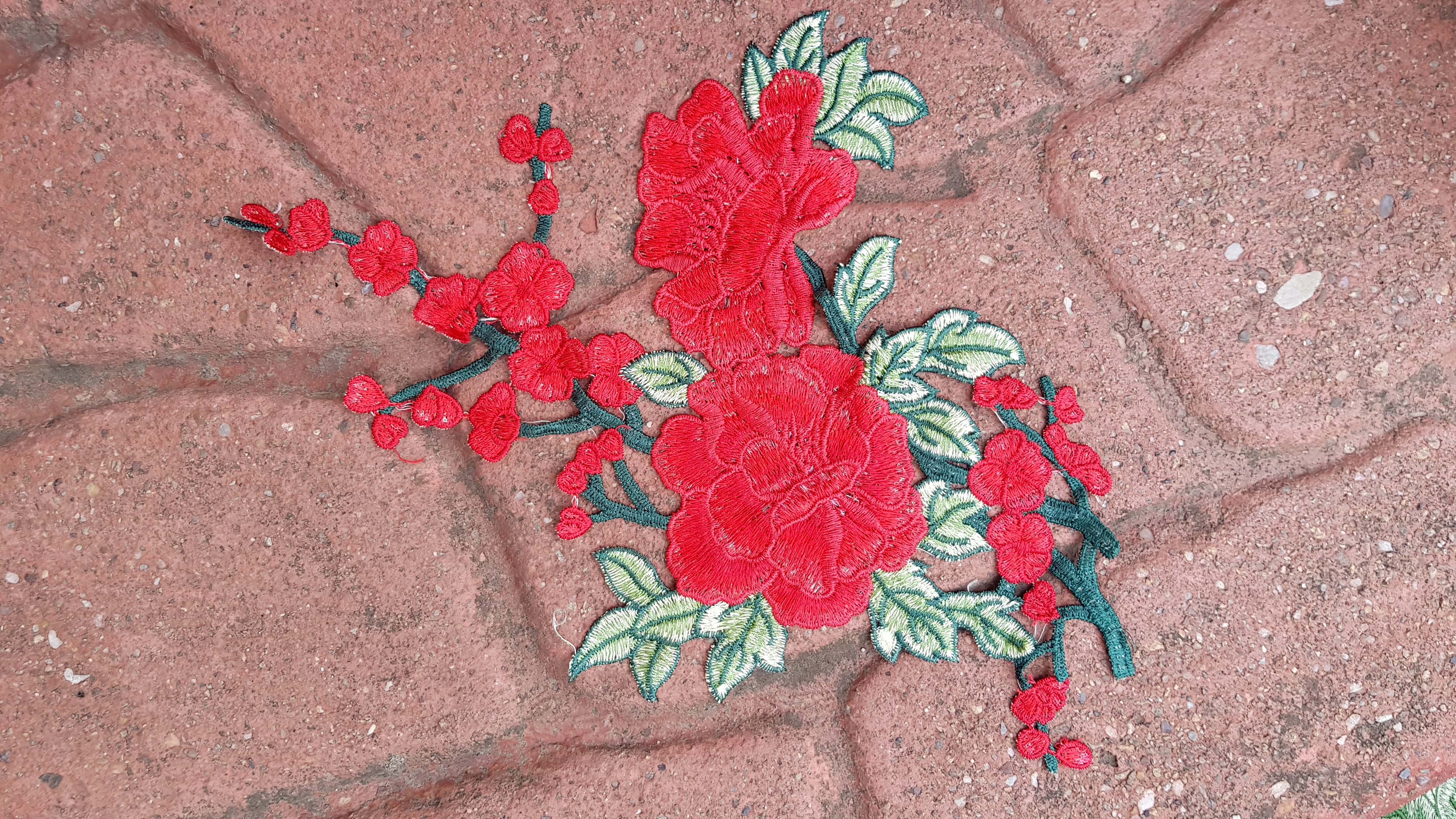 - Aplikácia nášivka kvet veľký červený (cca 33cm šírka)