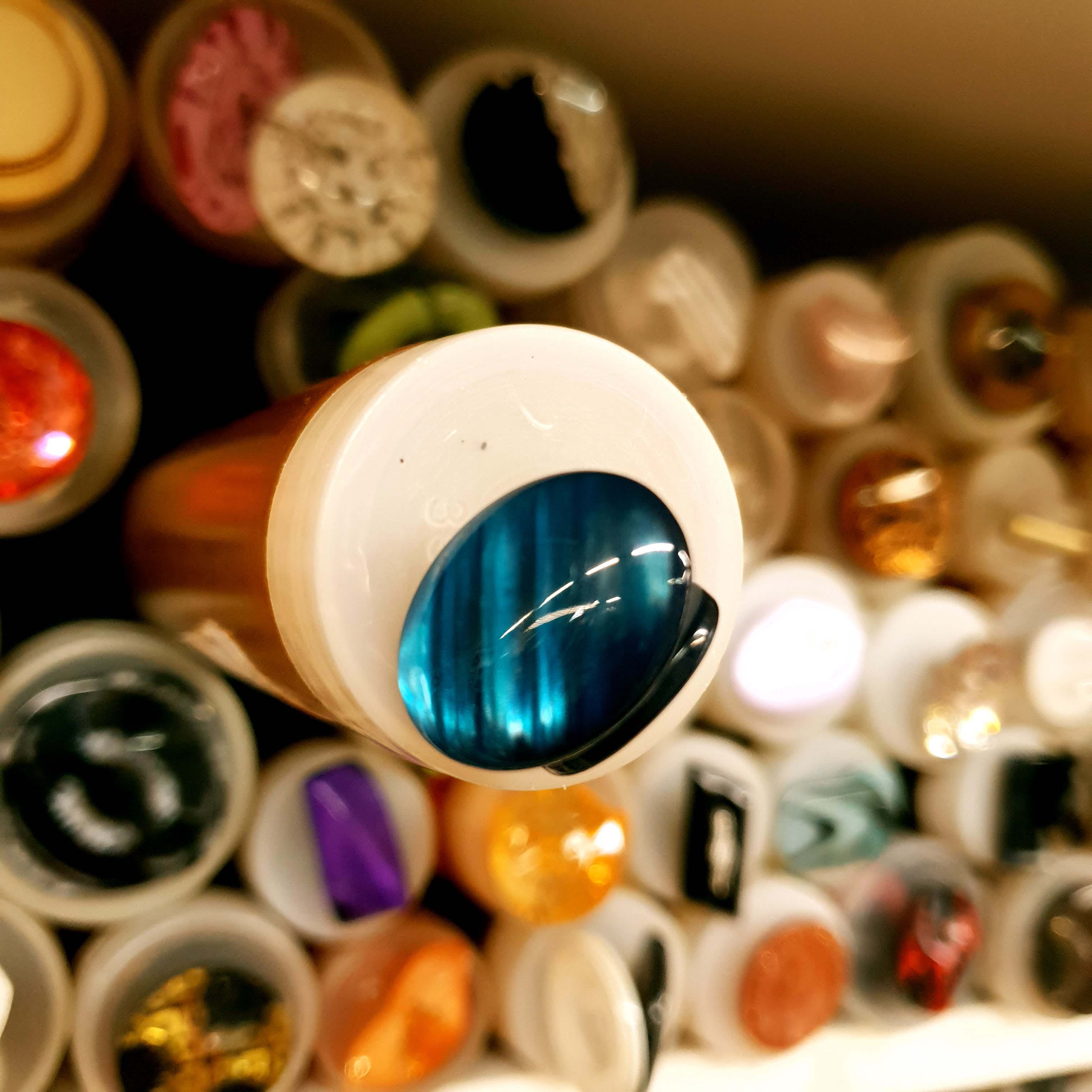 Atypický čierno petrolej gombík oválový väčší cca 2,2cmSkladom0,40 EUR/ ks0,33 EUR bez DPH