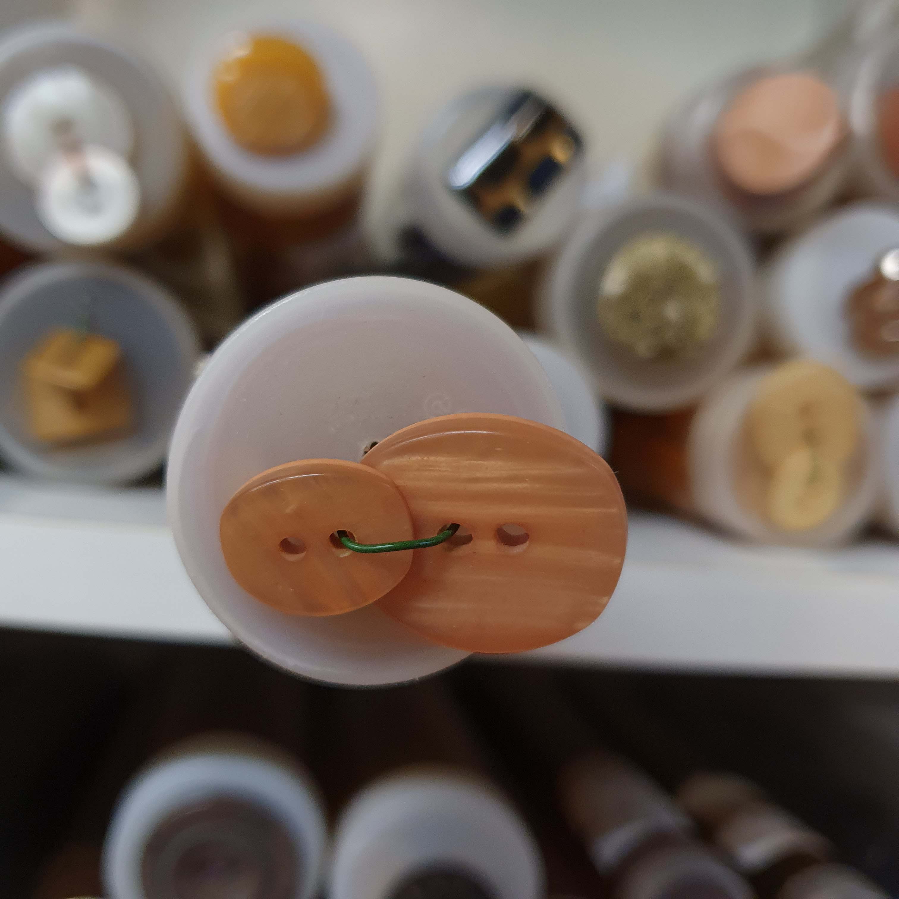 Atypický hnedo oranžový gombík dekoratívny väčší cca 2,2cmSkladom0,35 EUR/ ks0,28 EUR bez DPH