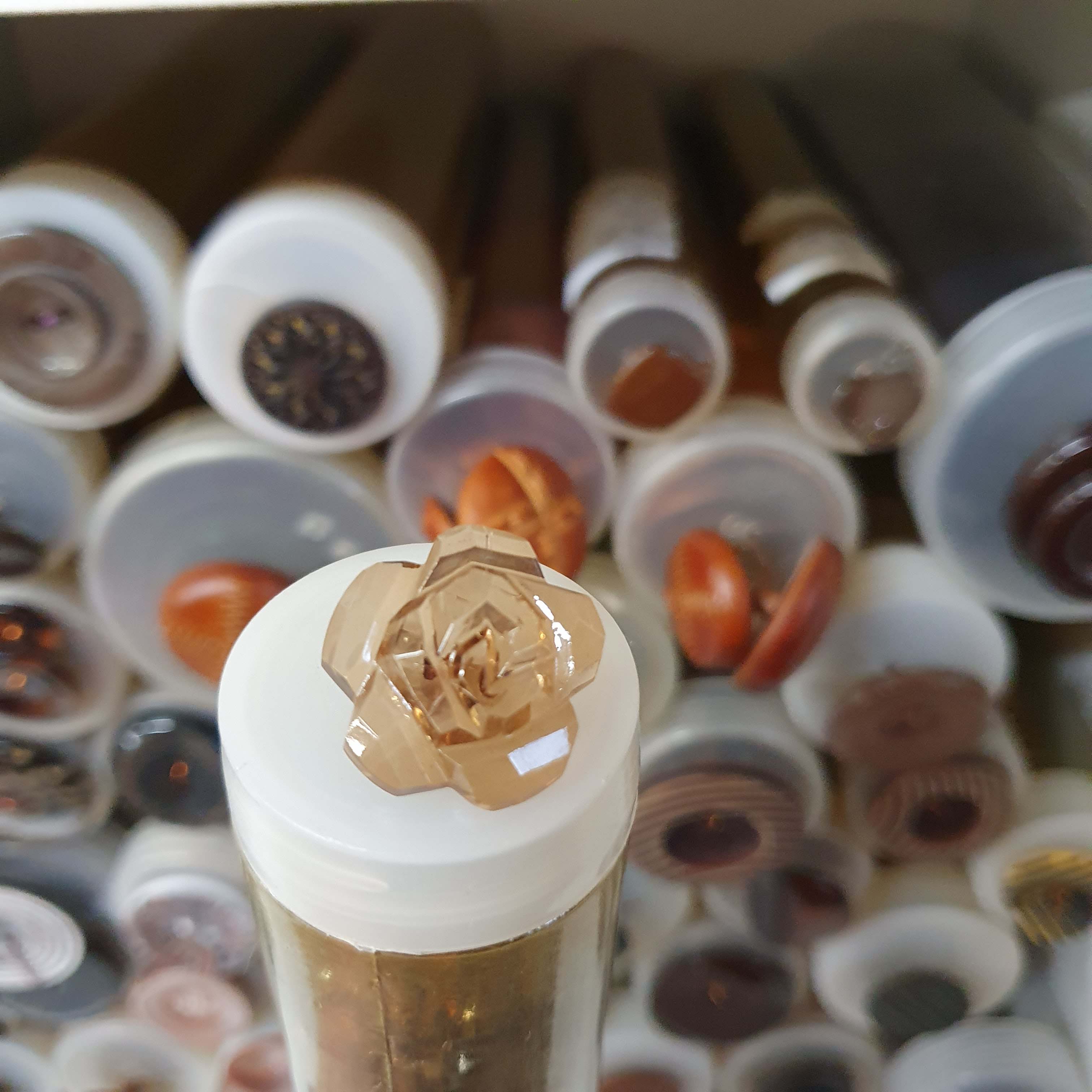 - Atypický hnedo priesvitný dekoratívny kvetgombík cca 2,2cm