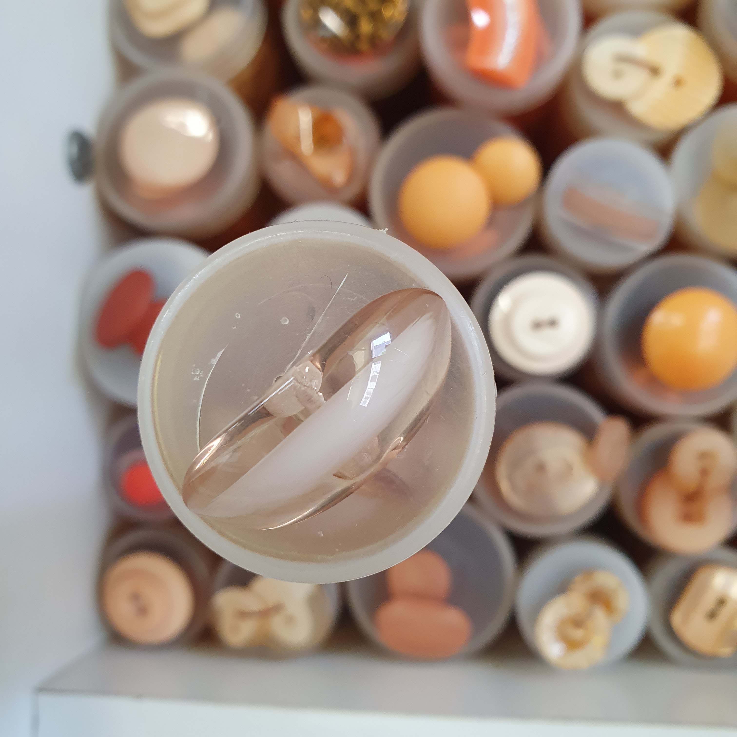 - Atypický priesvitný oranž lososový gombík dekoratívny cca 3cm