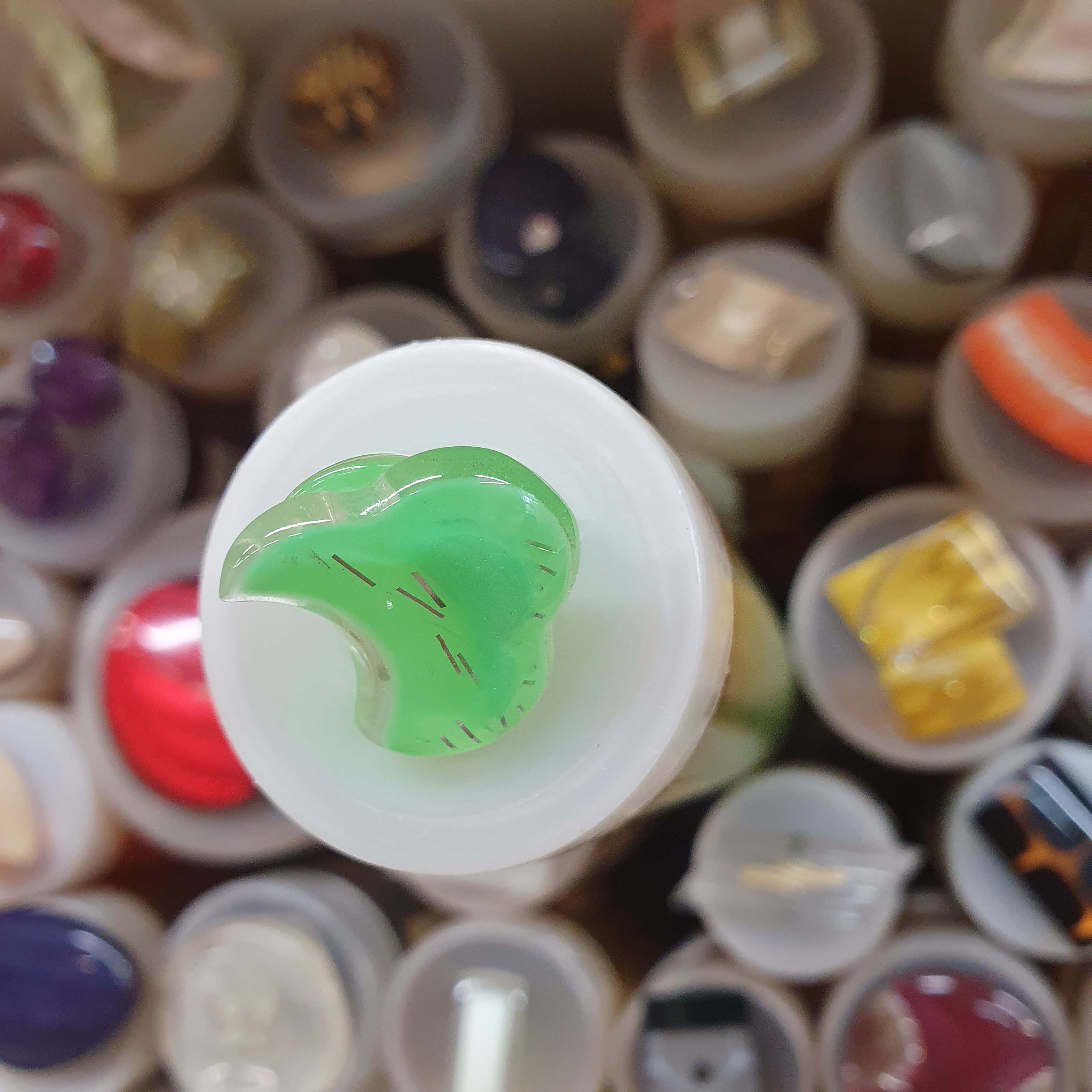 Atypický zelený dekoratívny gombík cca 2cmSkladom0,30 EUR/ ks0,24 EUR bez DPH