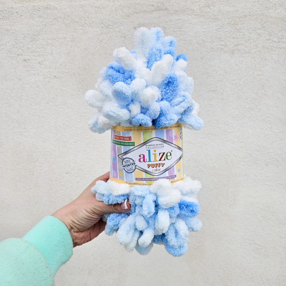 - Puffy Color 5865 - Bielo modrá vlna s očkami