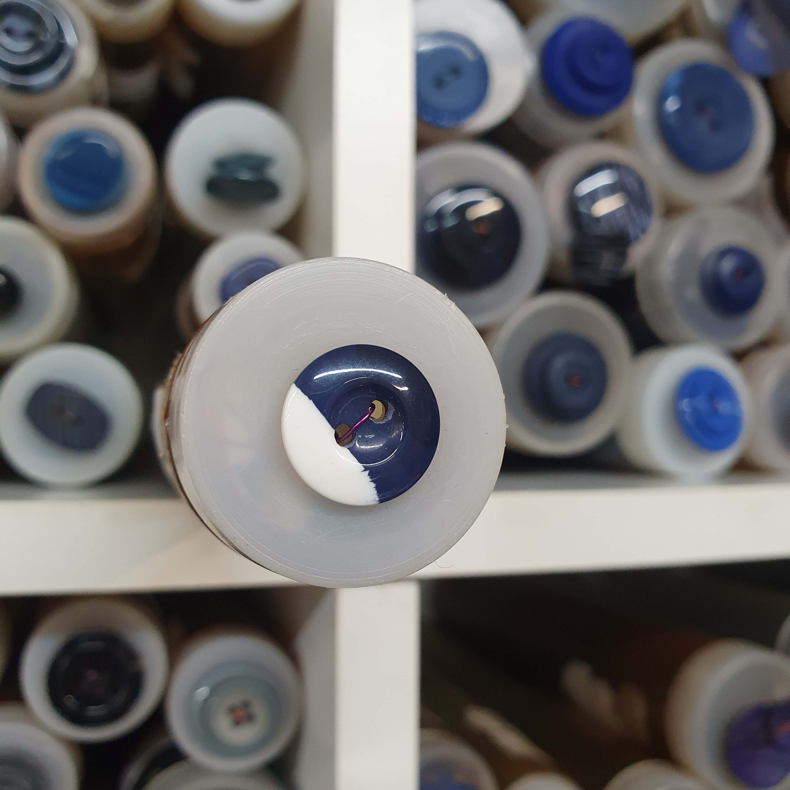 Bielo modrý gombík okrúhly cca 1,4cmSkladom0,15 EUR/ ks0,12 EUR bez DPH