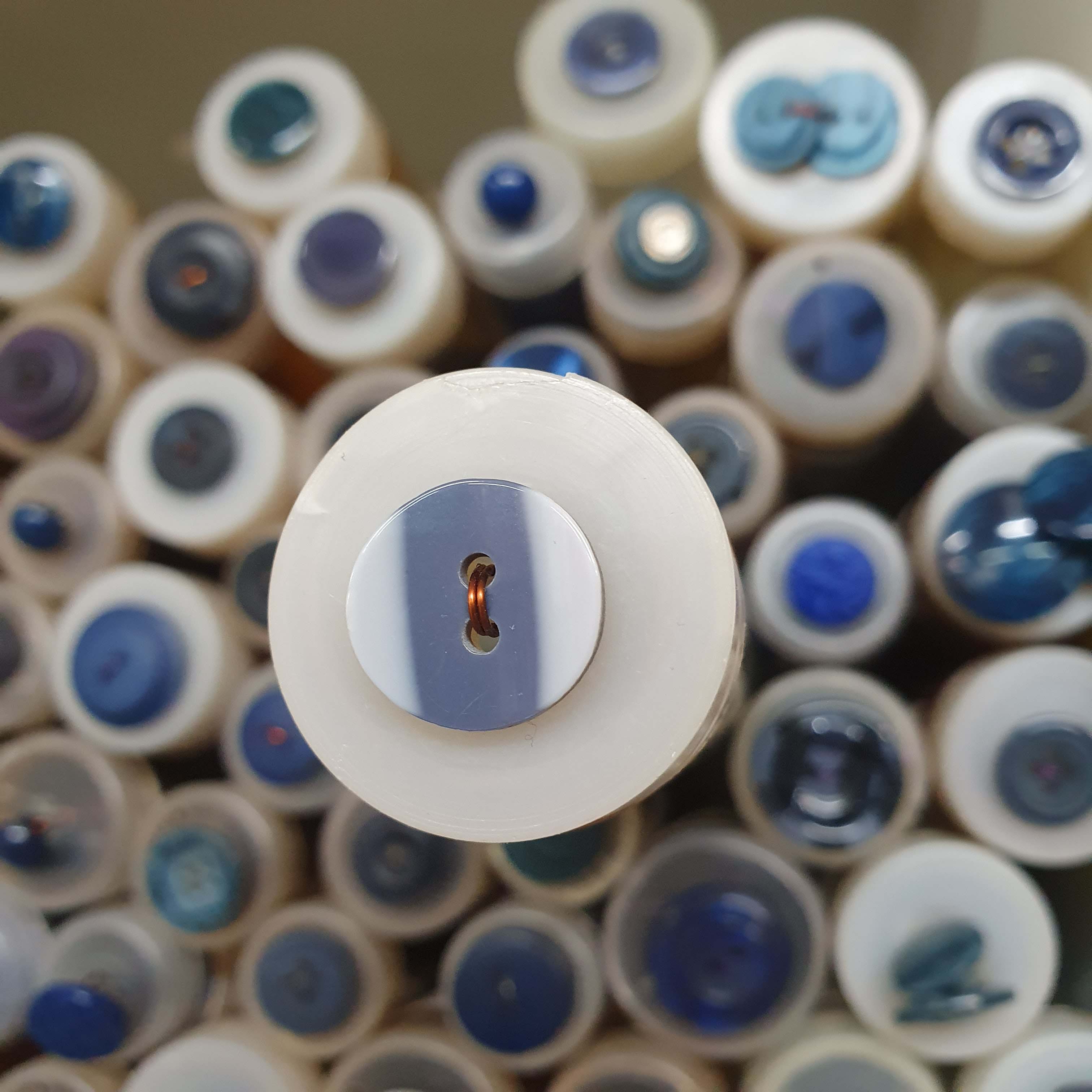 Bielo modrý gombík okrúhly cca 1,5cmSkladom0,30 EUR/ ks0,24 EUR bez DPH