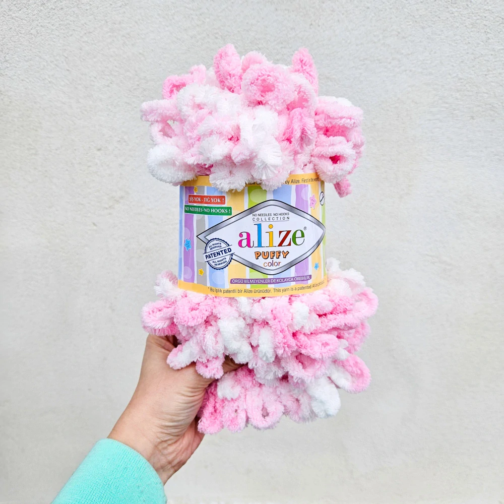 - Puffy Color 5863 - Bielo ružová vlna s očkami