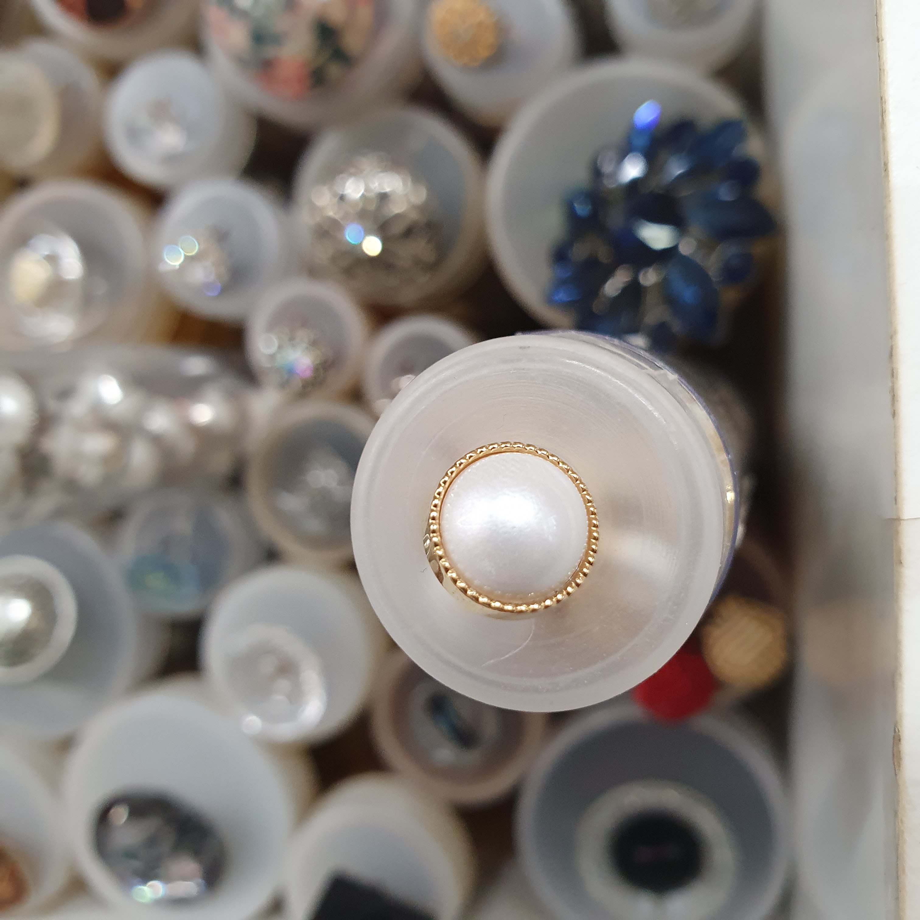 - Biely so zlatým okrajom gombík okrúhly cca 1cm