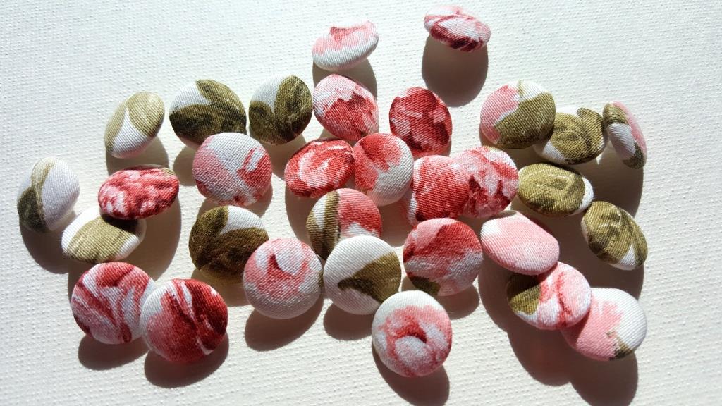 Krásne, ručne poťahované gombíky z kvalitnej bavlnenej látky dodajú bodku Vášmu výrobku. Vhodné na svetríky, ako dekorácia na hračky, čiapky, sukne, a iné výrobky
