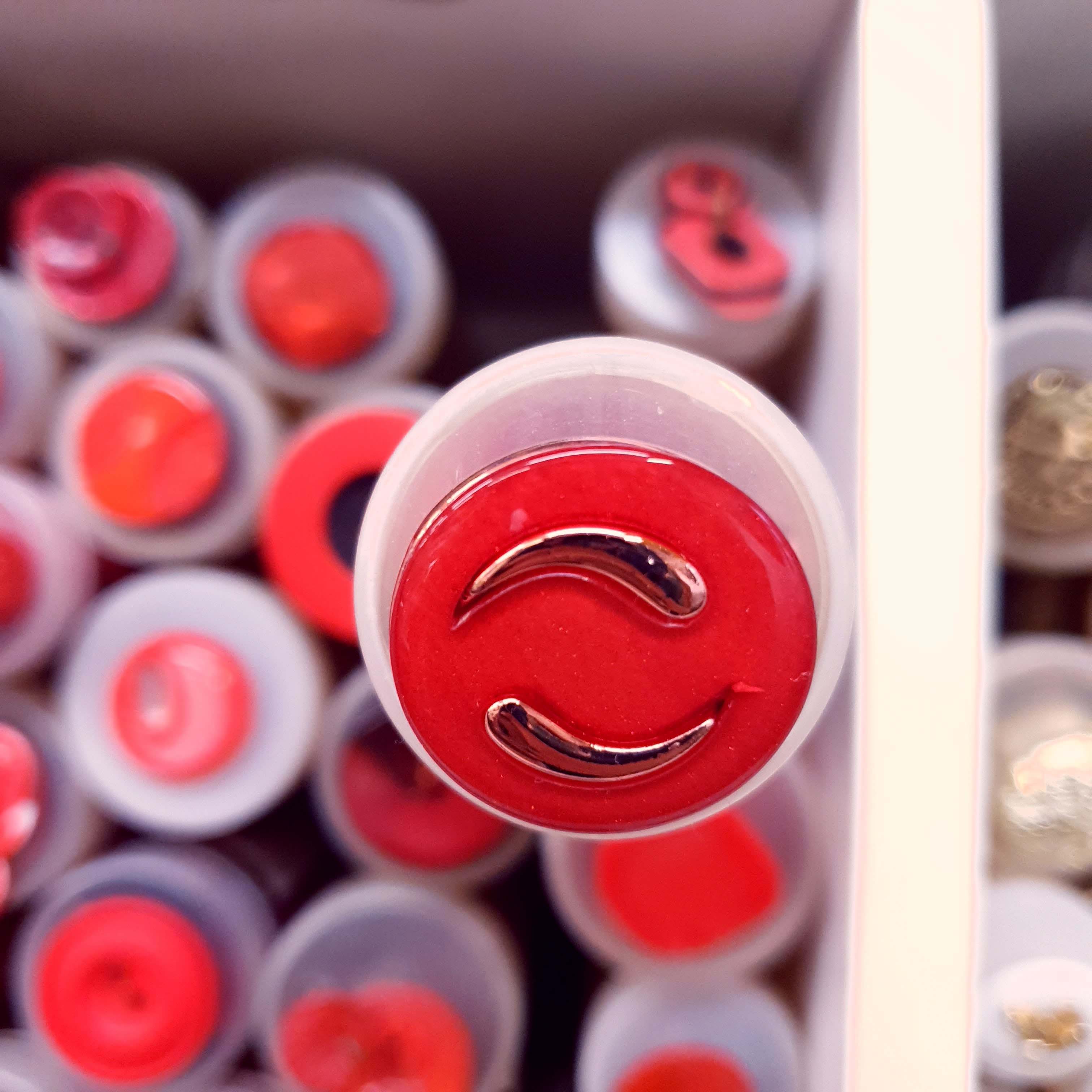 Červeno strieborný gombík dekoratívny okrúhly cca 2,5cmSkladom0,50 EUR/ ks0,41 EUR bez DPH