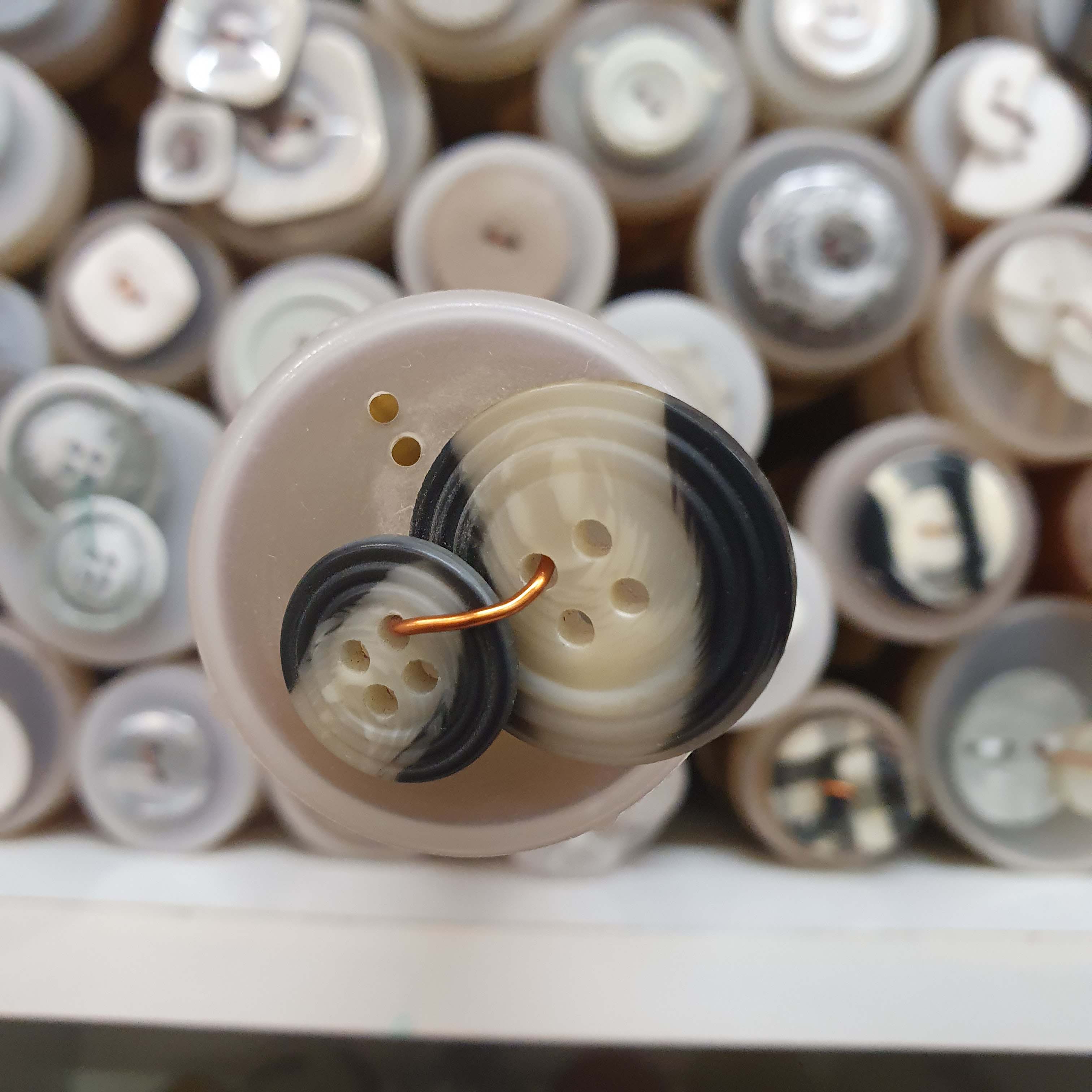 Čierno bežový gombík okrúhly väčší cca 2,5cmSkladom0,30 EUR/ ks0,24 EUR bez DPH