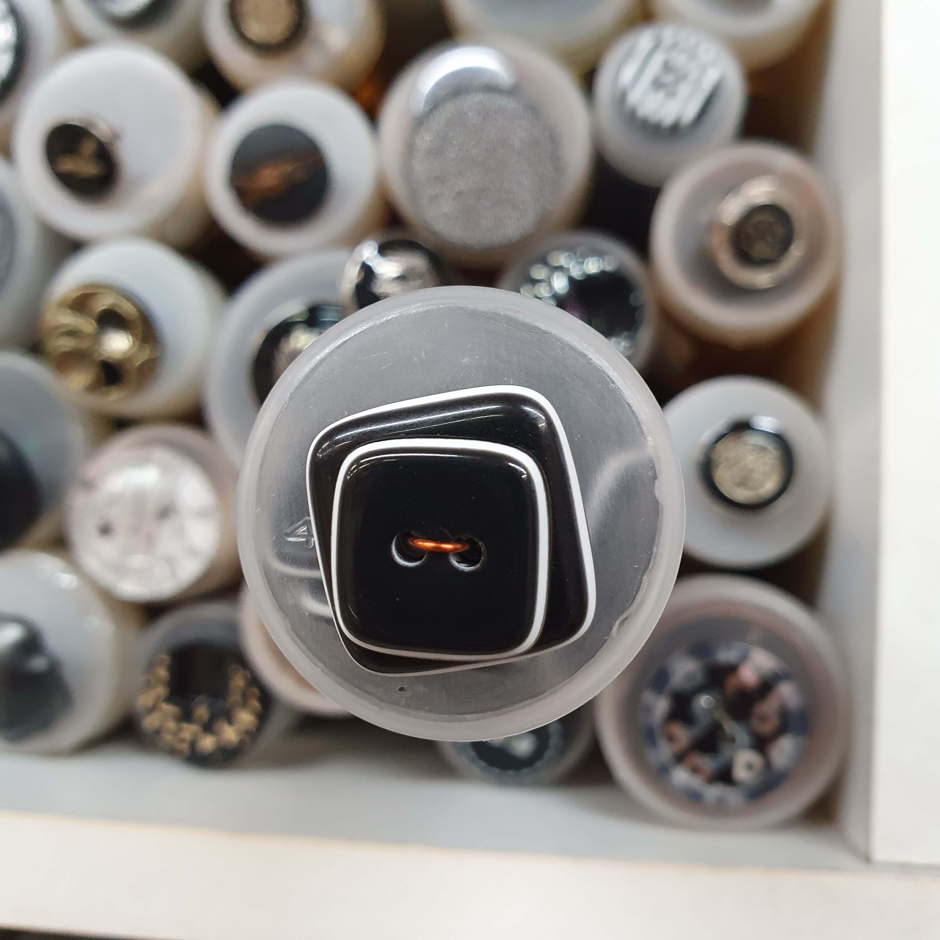 Čierno biely gombík dekoratívny štvorec menší cca 1,9cmSkladom0,35 EUR/ ks0,28 EUR bez DPH