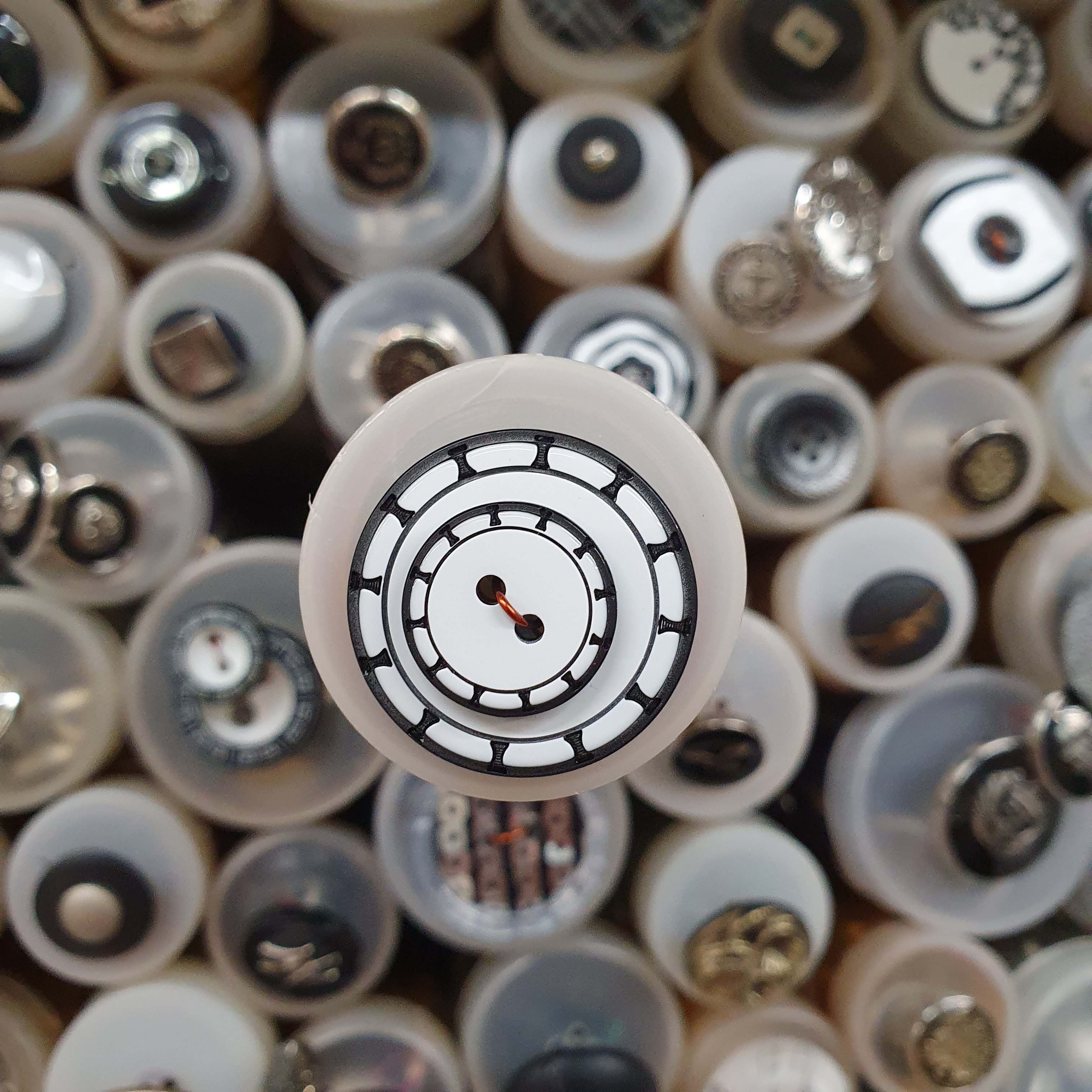 • Čierno biely ozdobný gombík menší okrúhly cca 1,5cm