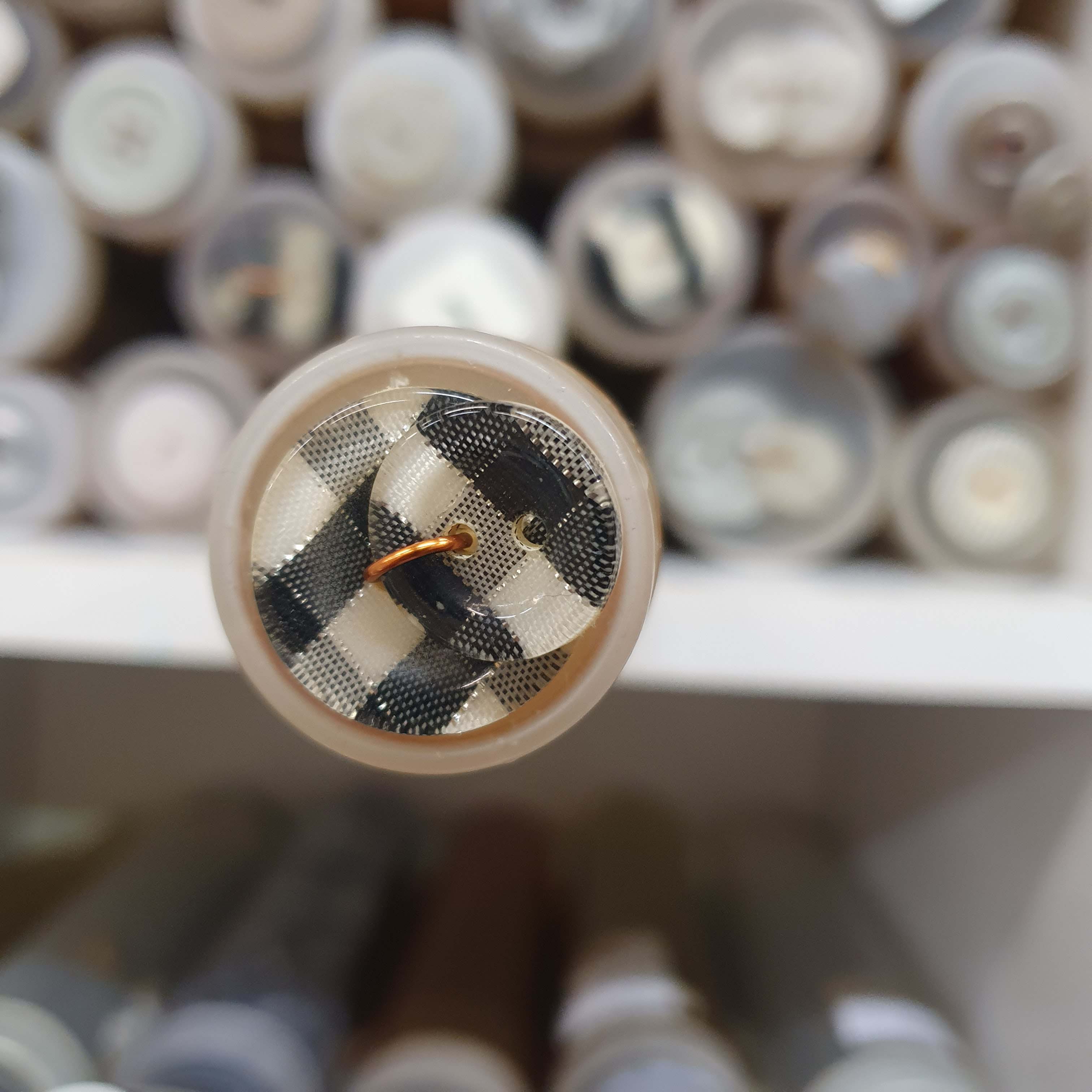 Čierno biely ozdobný gombík väčší okrúhly cca 2cmSkladom0,30 EUR/ ks0,24 EUR bez DPH