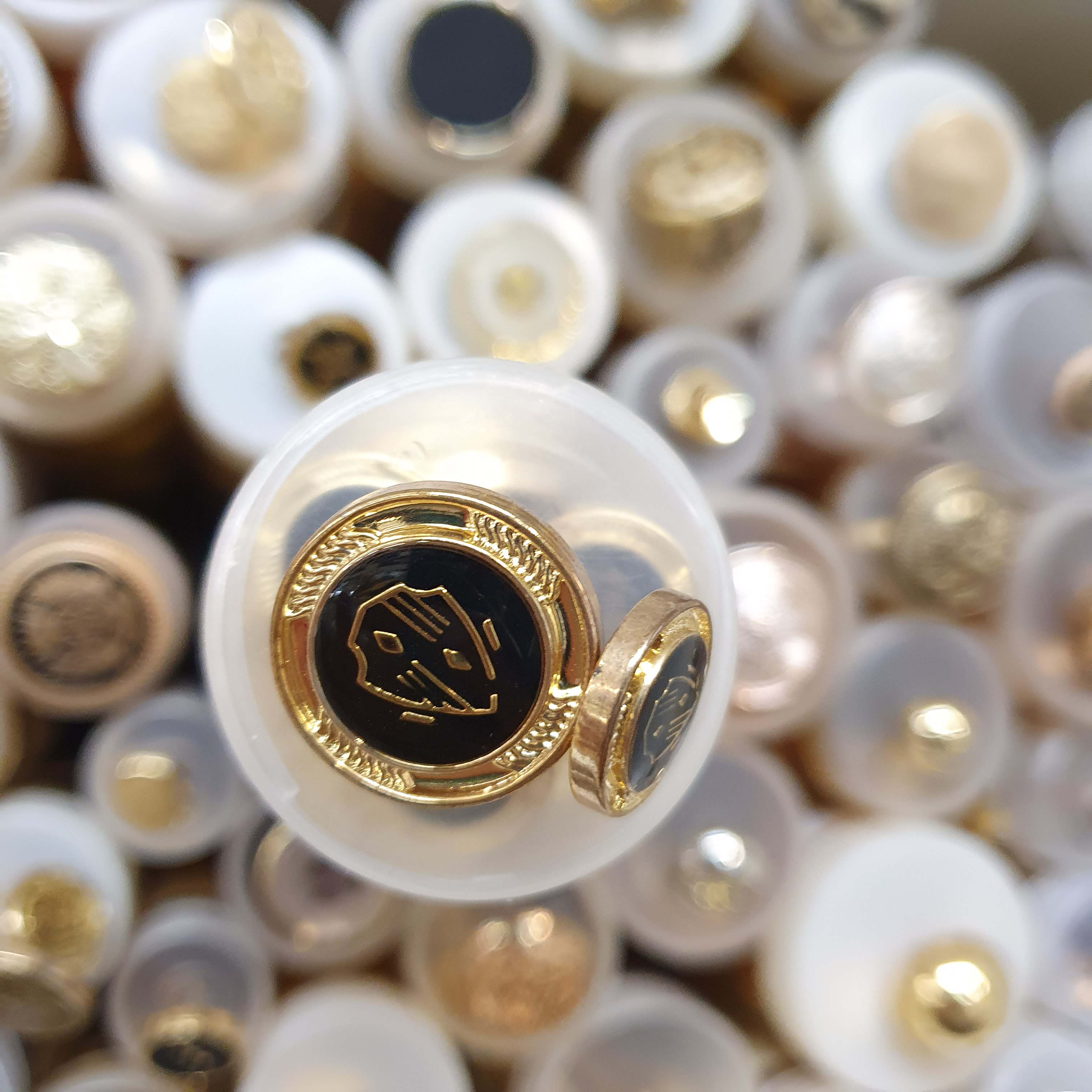 Čierno zlatý gombík okrúhly menší cca 1,5cmSkladom0,30 EUR/ ks0,24 EUR bez DPH