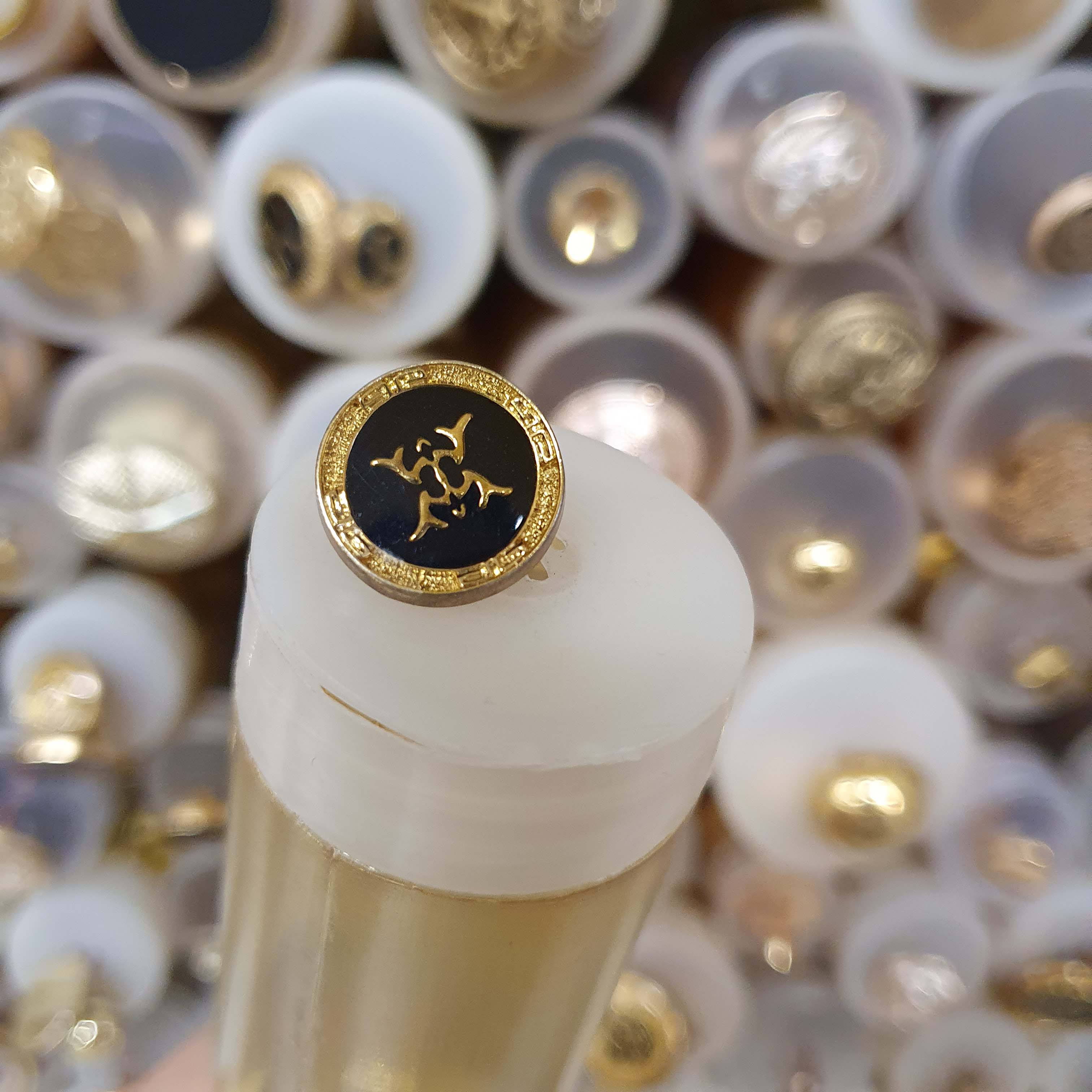 Čierno zlatý gombík okrúhly živicový cca 1,5cmSkladom0,40 EUR/ ks0,33 EUR bez DPH