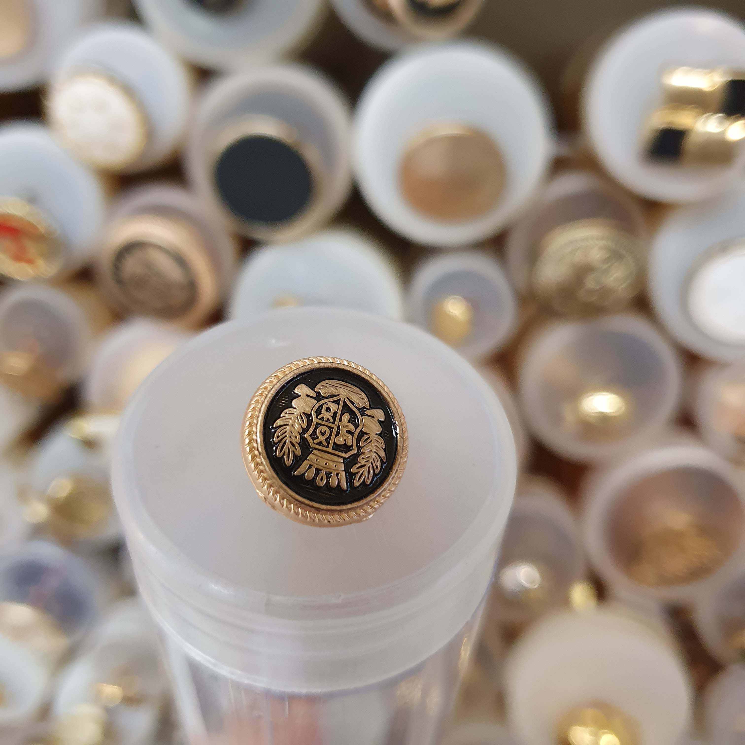 Čierno zlatý gombík ozdobný okrúhly živicový cca 1,5cmSkladom0,35 EUR/ ks0,28 EUR bez DPH