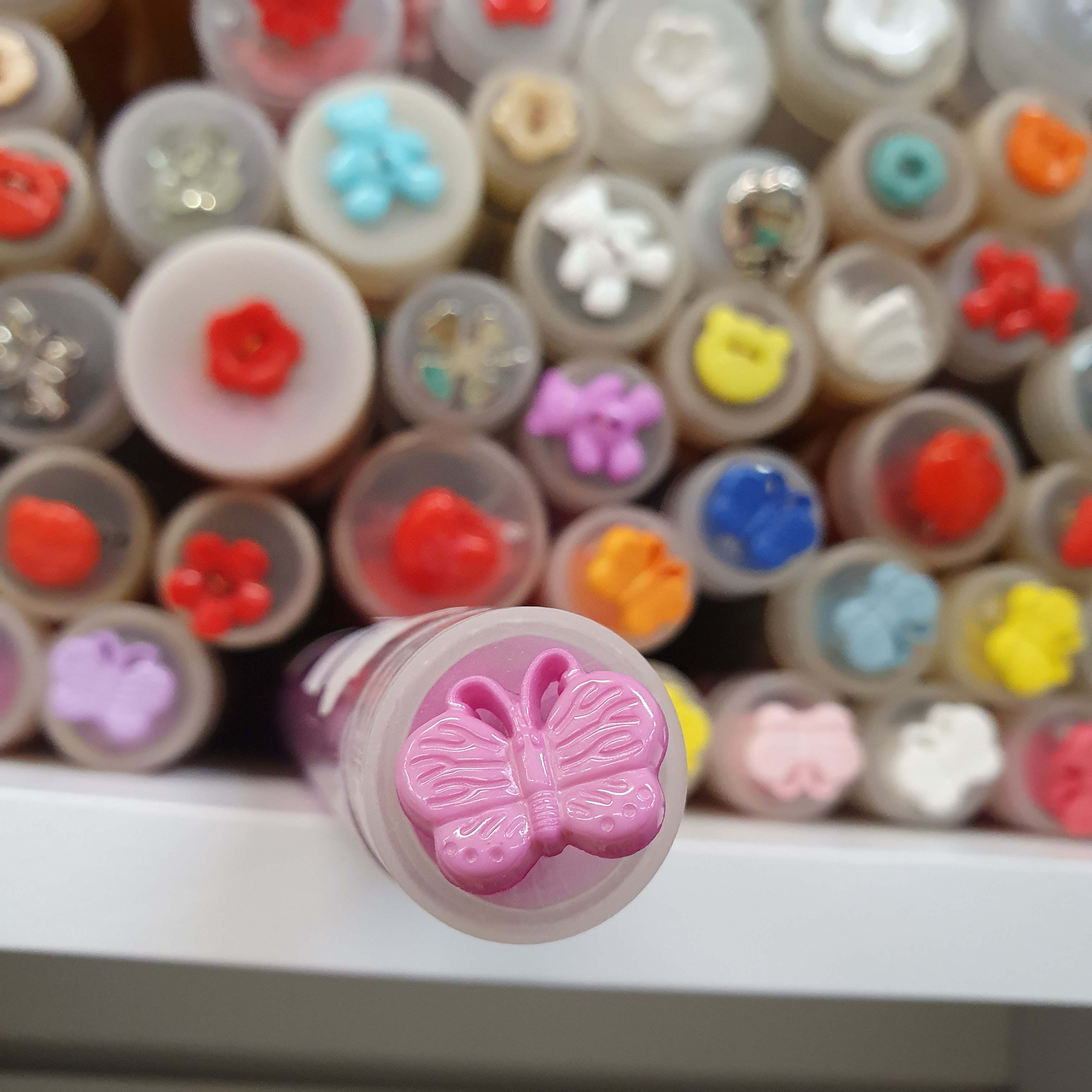 Detský gombík - motýľ fialovo ružový cca 1,7cm