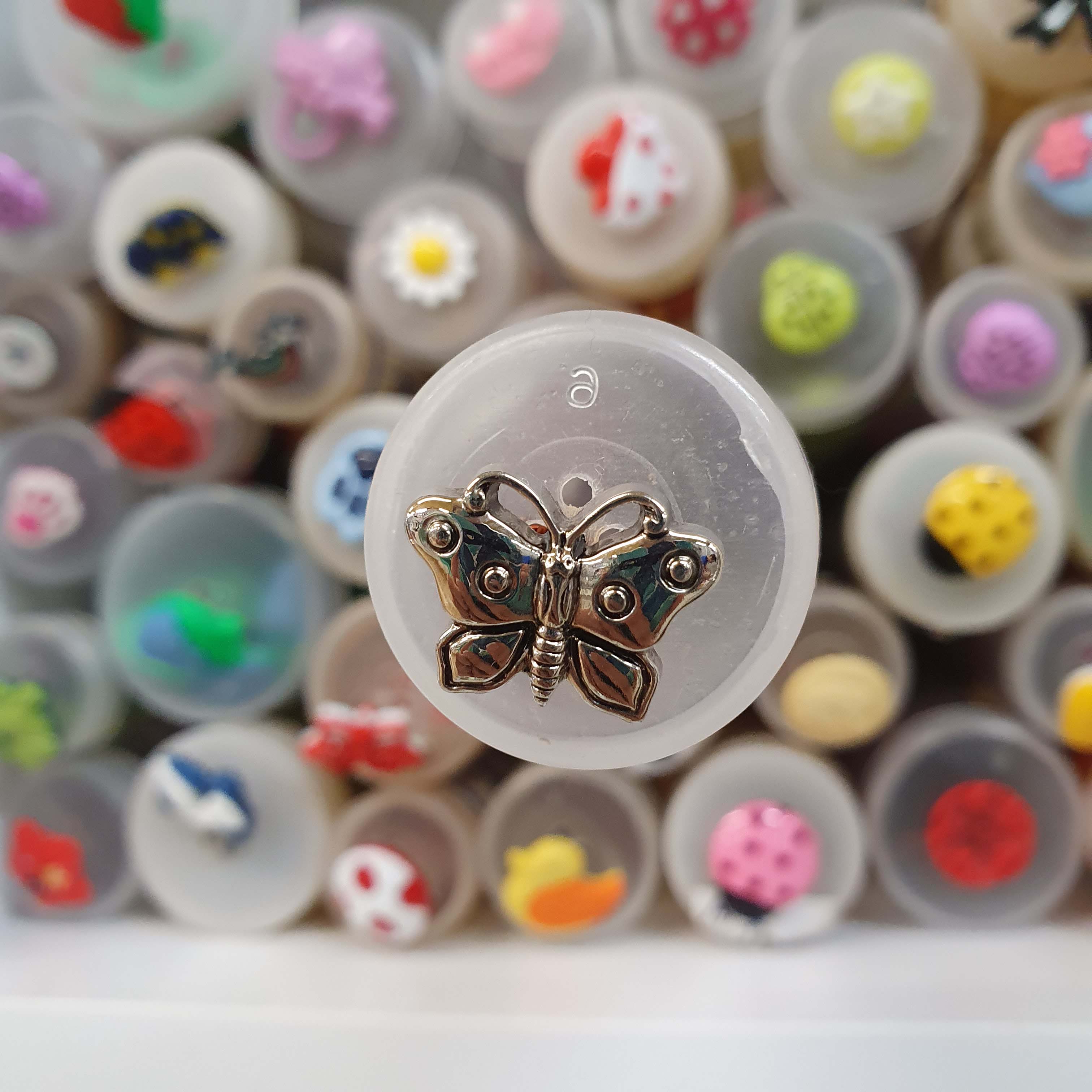 Detský gombík - motýľ strieborný cca 1,7cmSkladom0,30 EUR/ ks0,24 EUR bez DPH