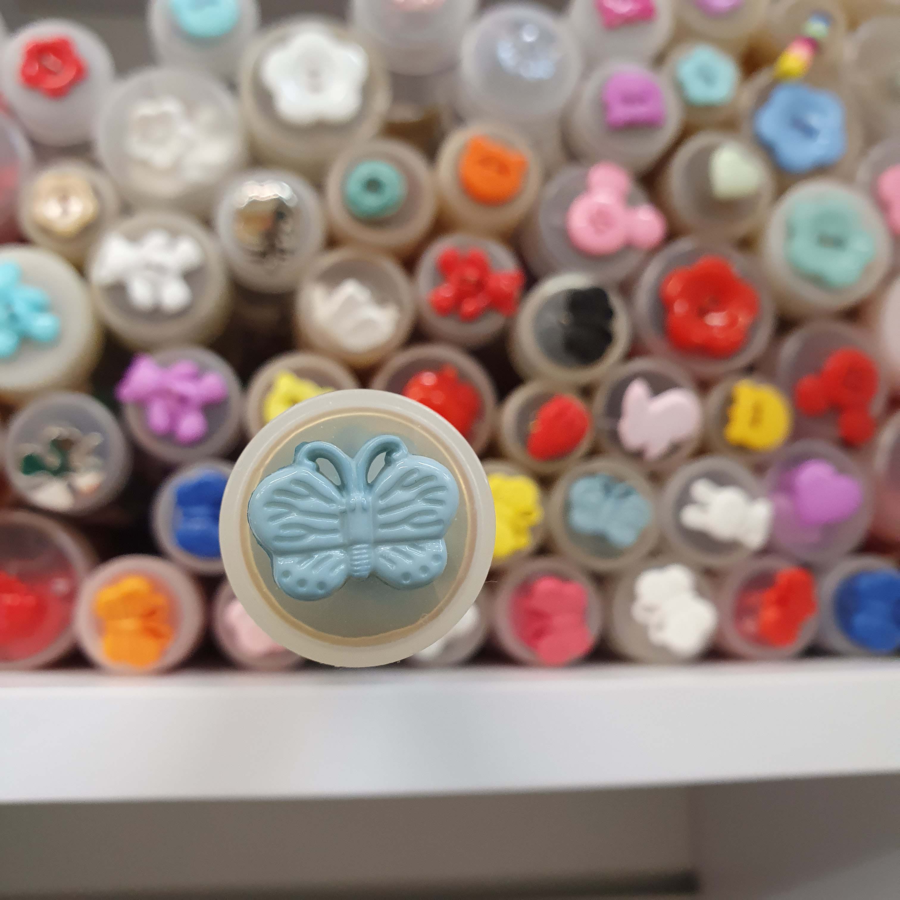 Detský gombík - motýľ vintage modrý cca 1,7cm