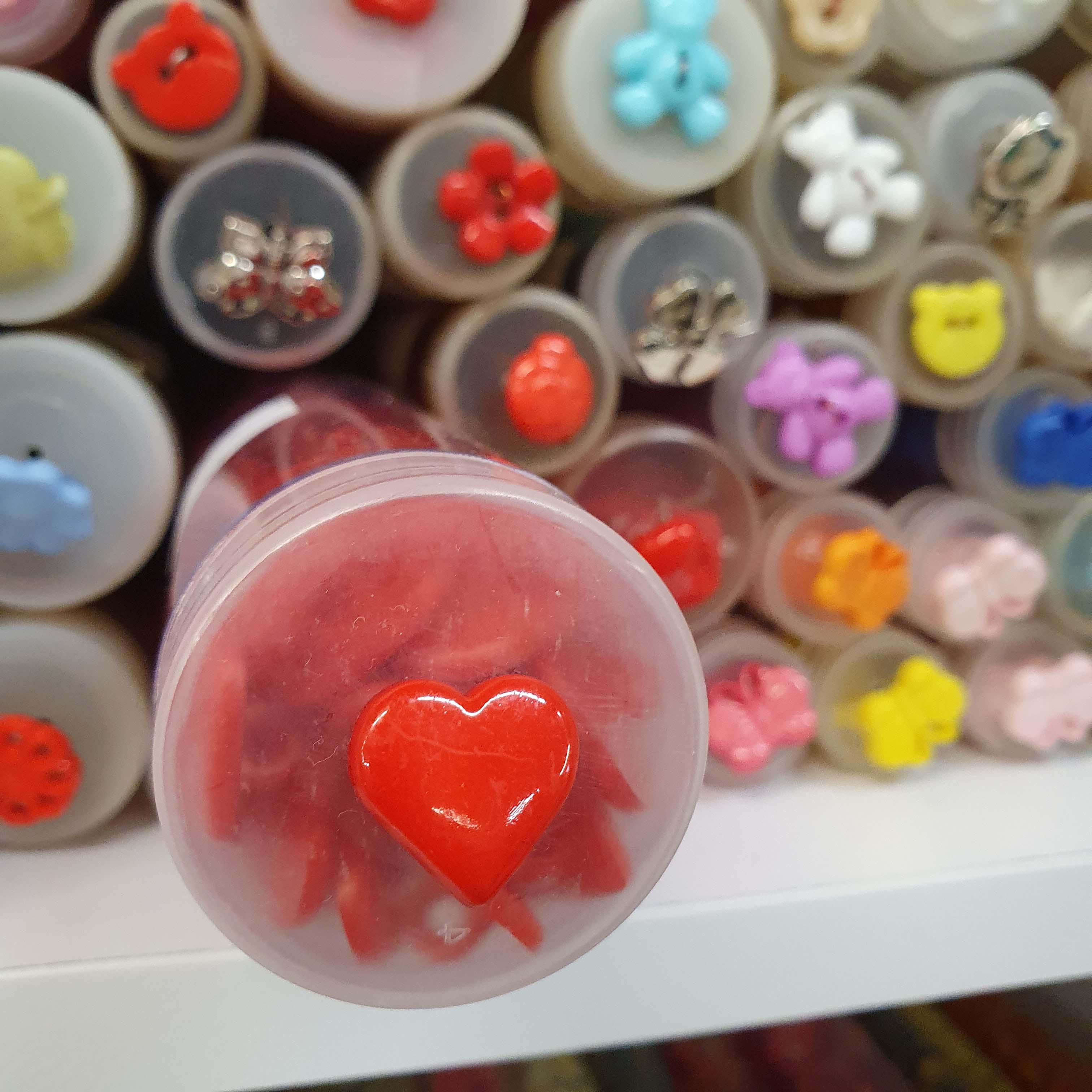 Detský gombík - srdce červené cca 1,5cmSkladom0,25 EUR/ ks0,20 EUR bez DPH
