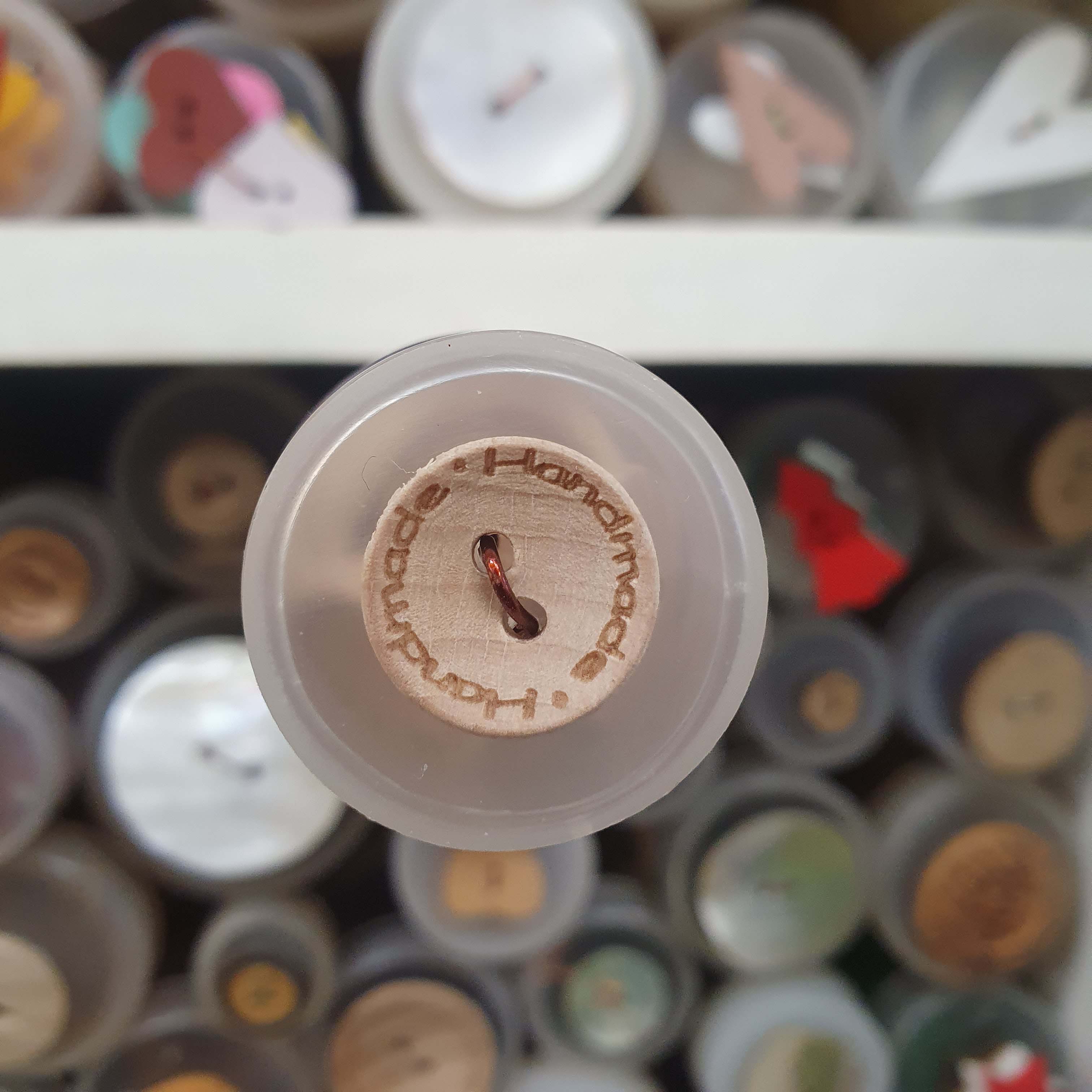 Drevený dekoratívny gombík okrúhly "handmade" cca 1,4cmSkladom0,25 EUR/ ks0,20 EUR bez DPH