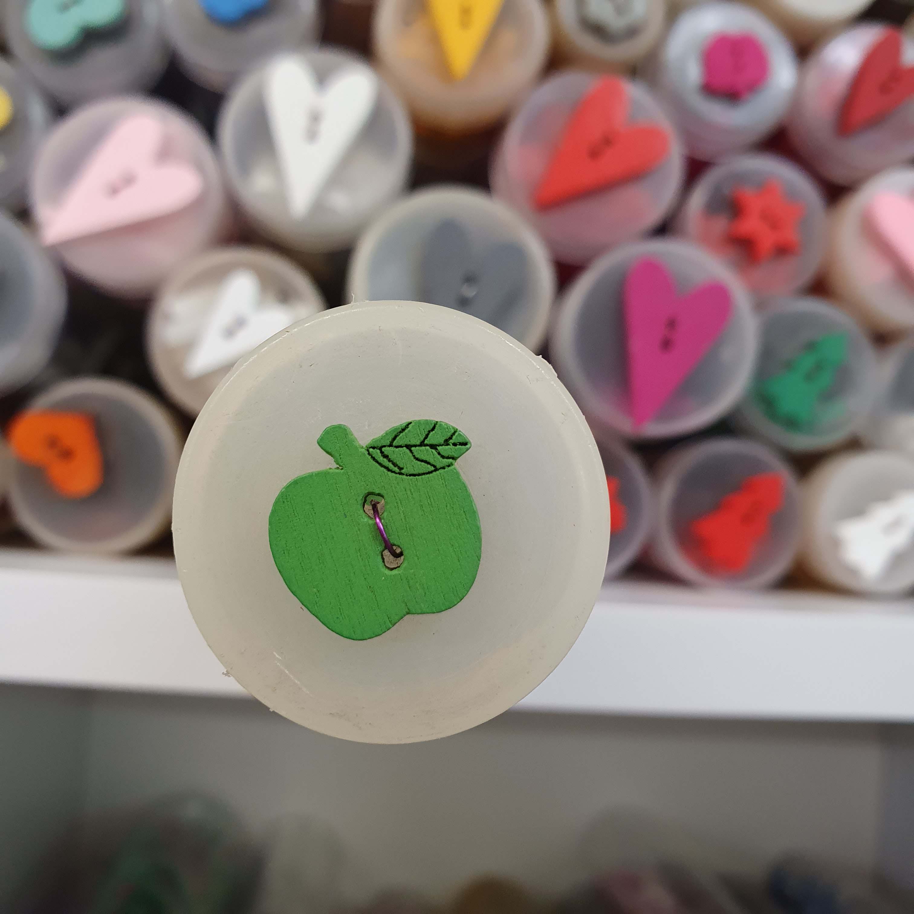 Drevený gombík - jablko zelené - dekoratívny cca 1,5cmSkladom0,20 EUR/ ks0,16 EUR bez DPH