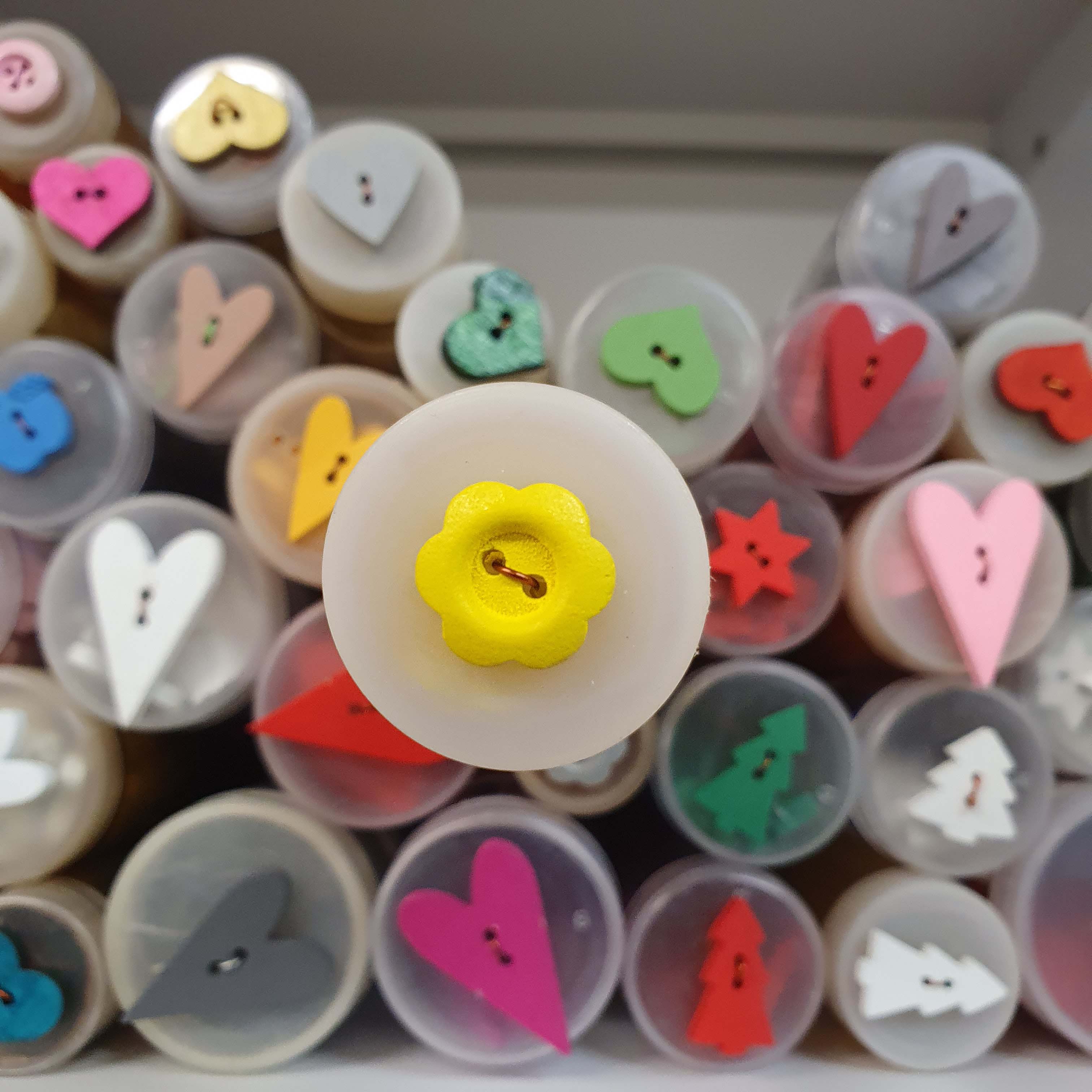 Drevený gombík - kvet žltý - dekoratívny cca 1,5cmSkladom0,20 EUR/ ks0,16 EUR bez DPH