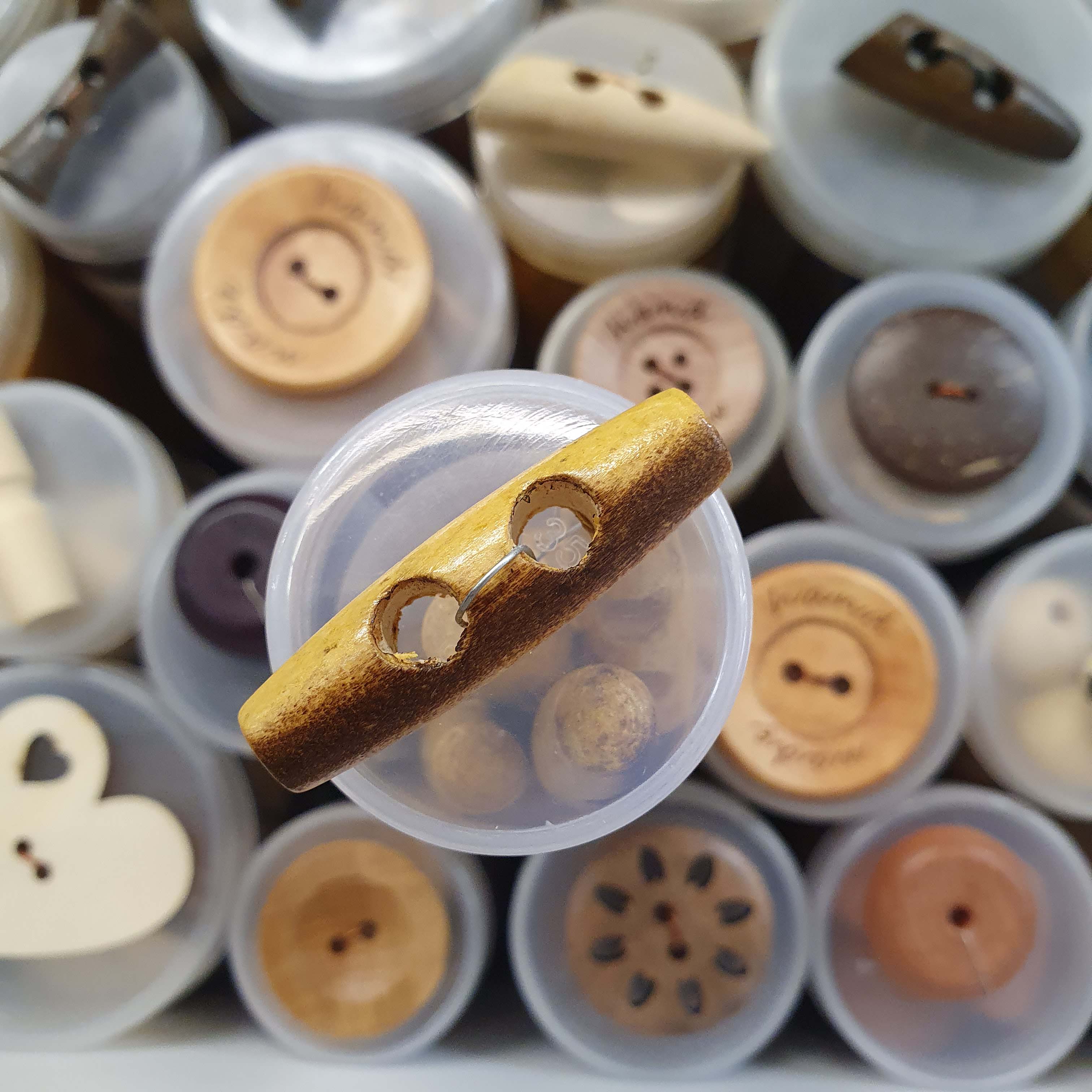Drevený gombík olivka - roh prírodný dvoj farebný cca 4cmSkladom0,55 EUR/ ks0,45 EUR bez DPH