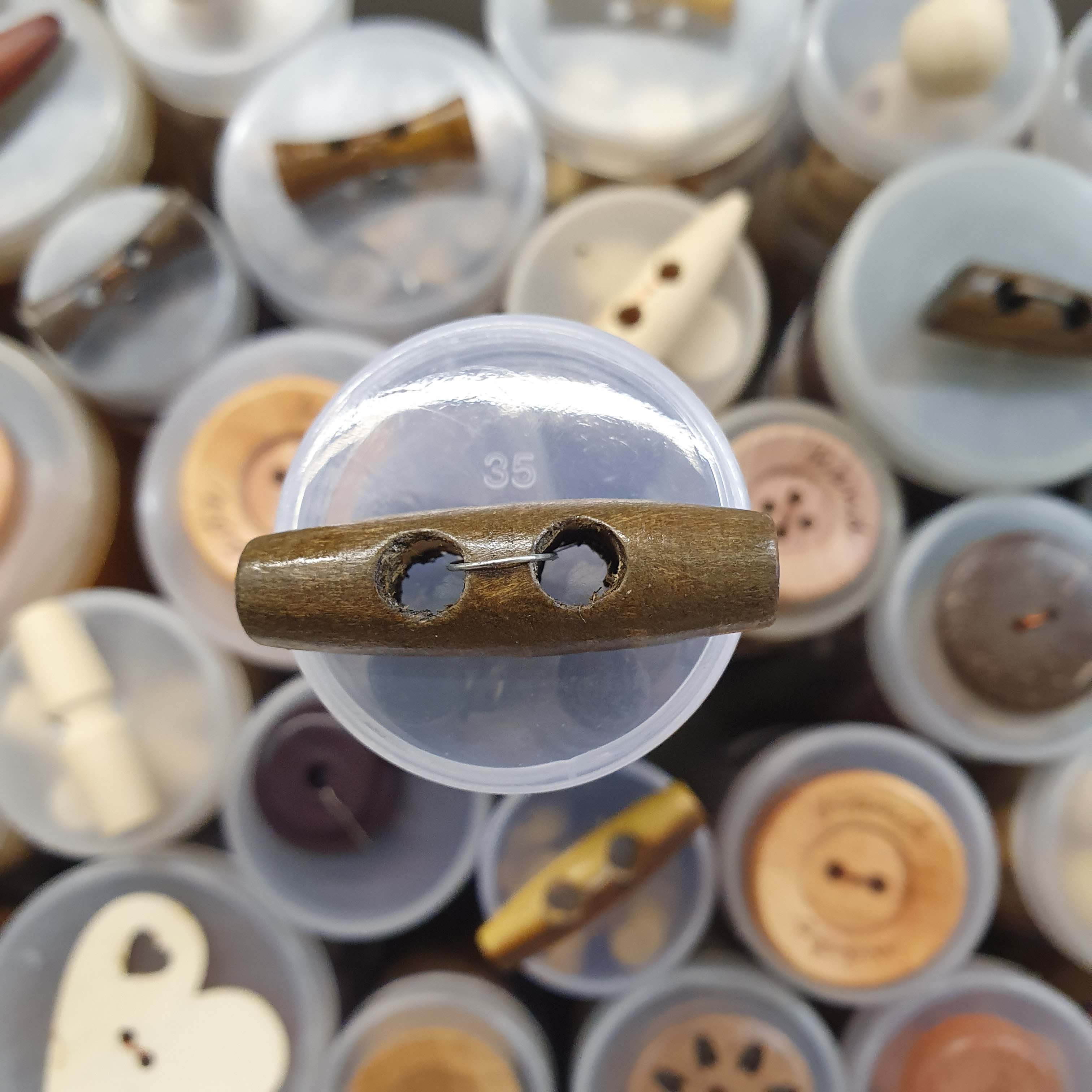 Drevený gombík olivka - roh tm hnedý cca 4cm