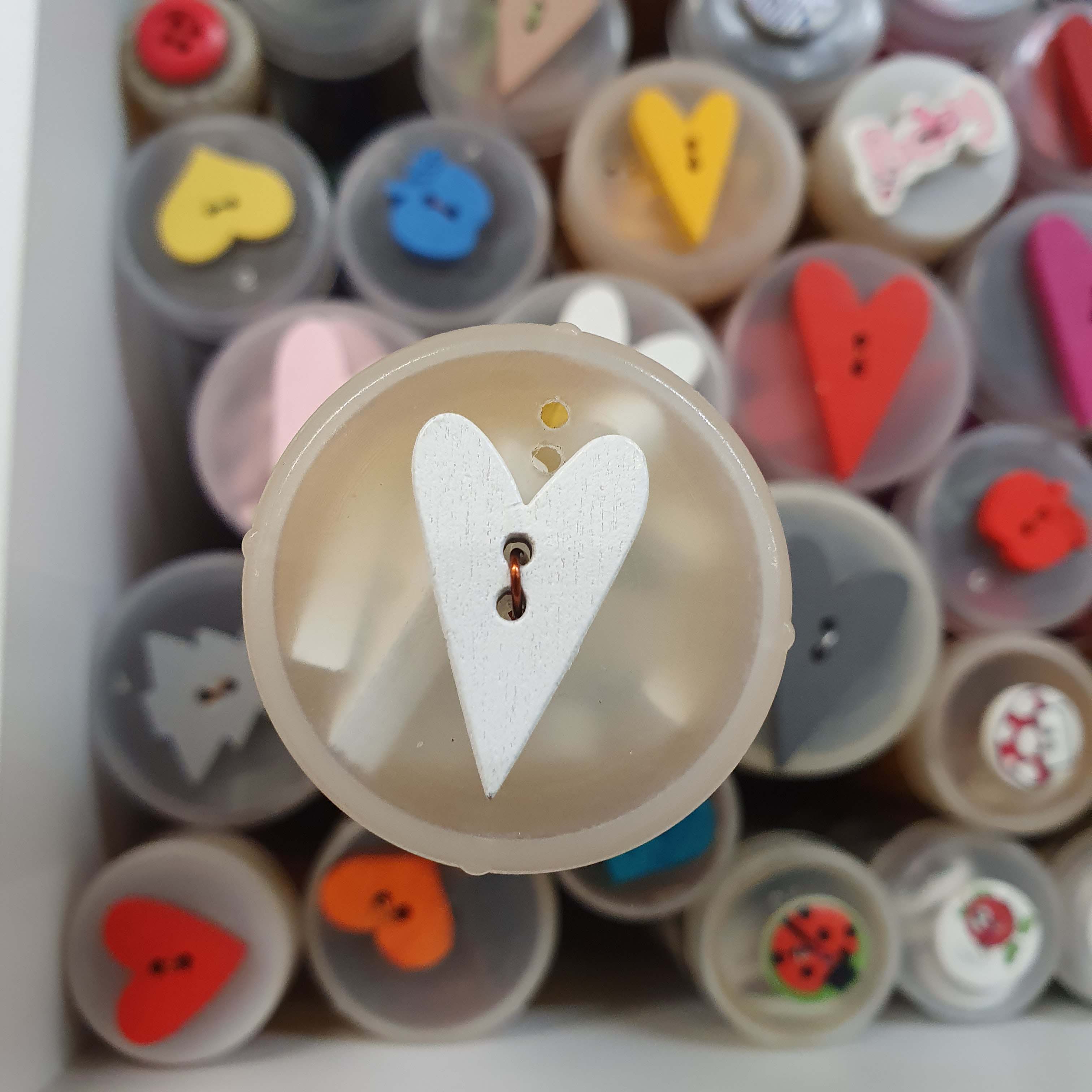 - Drevený gombík - srdce - biely menší dekoratívny - 15 x 23 mm