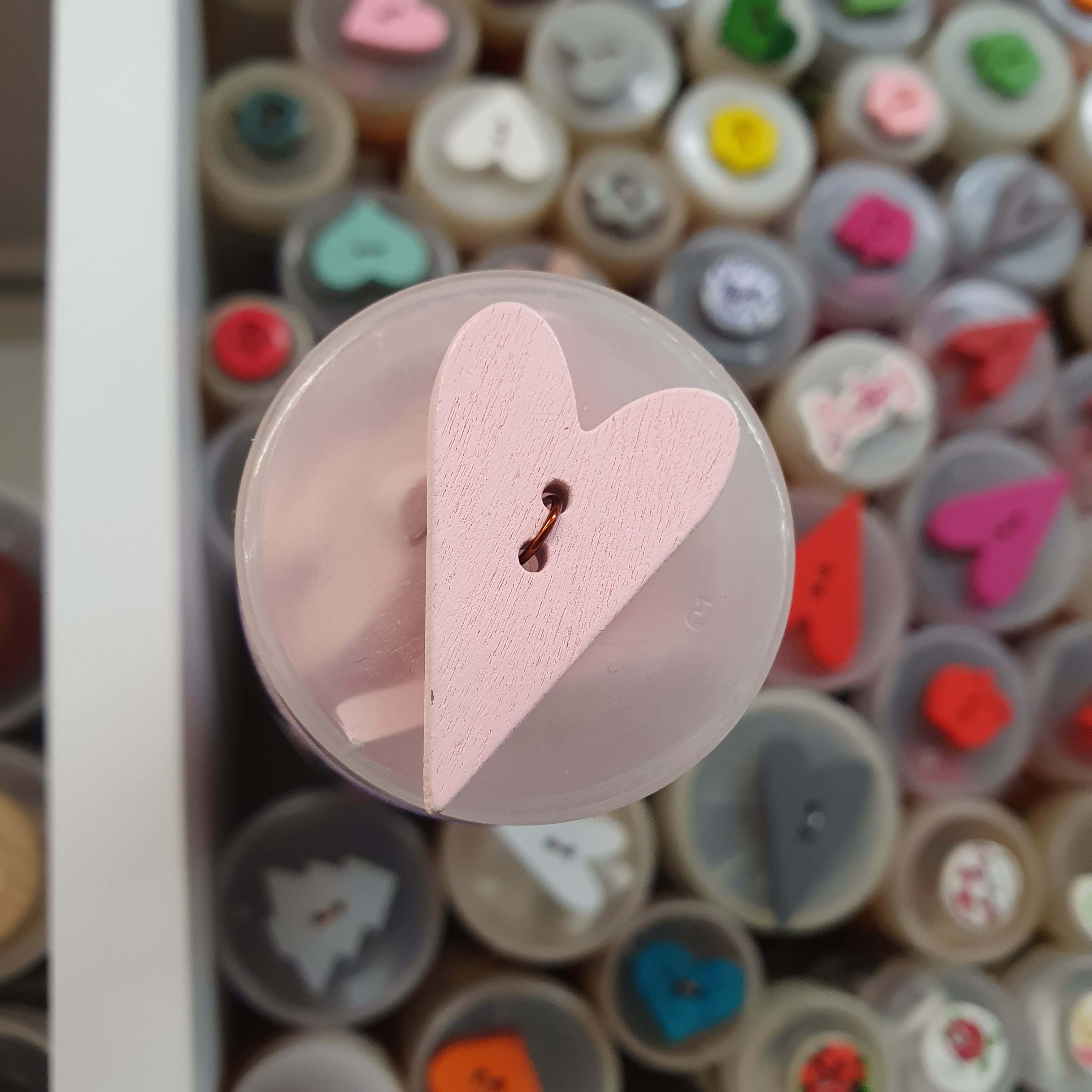 Drevený gombík - srdce - púdrovo ružový väčší dekoratívny - 21 x 33 mmSkladom0,25 EUR/ ks0,20 EUR bez DPH