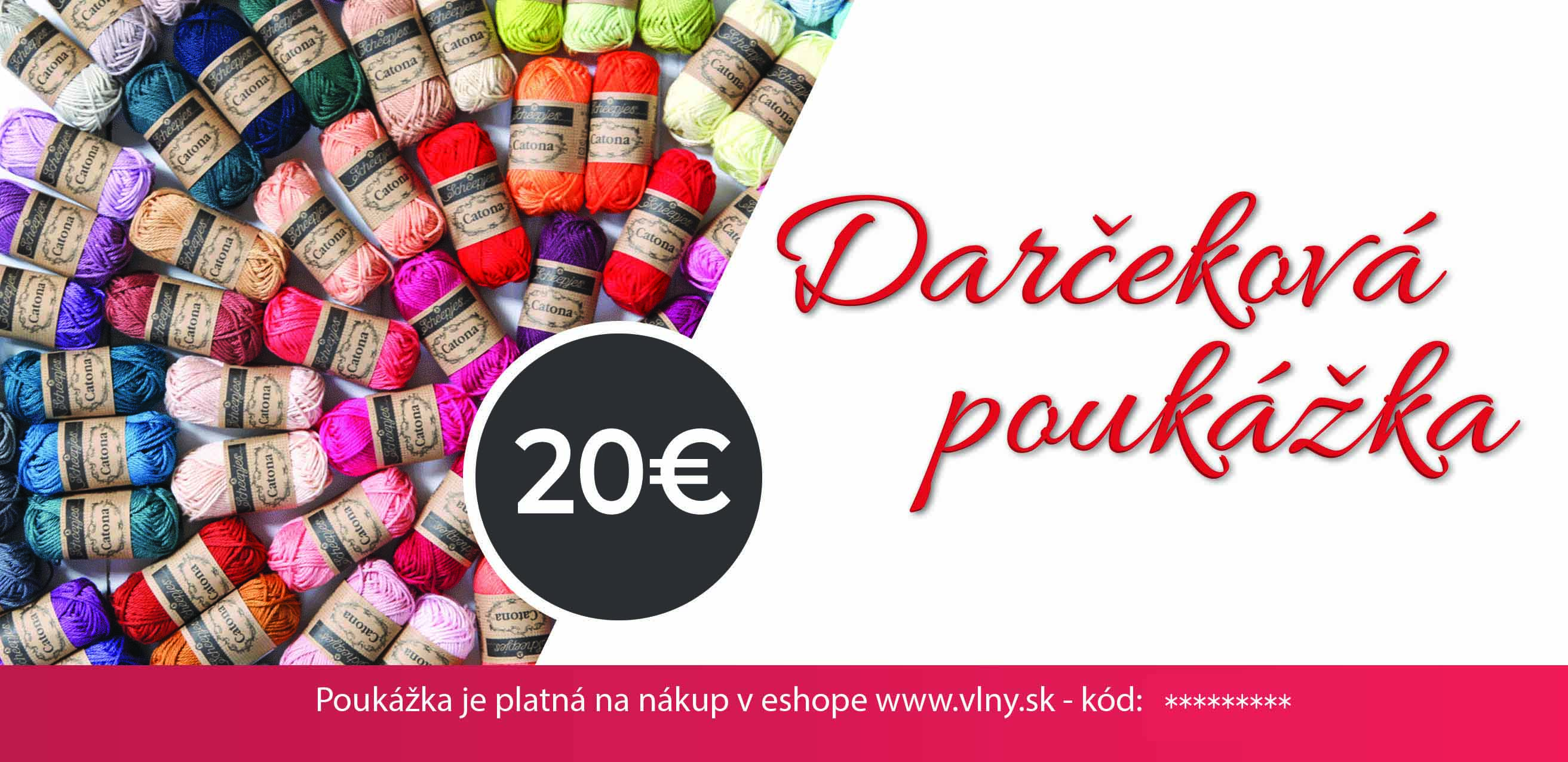 Darčeková poukážka v elektronickej forme v hodnote 20€ na nákup v našom eshope www.vlny.sk