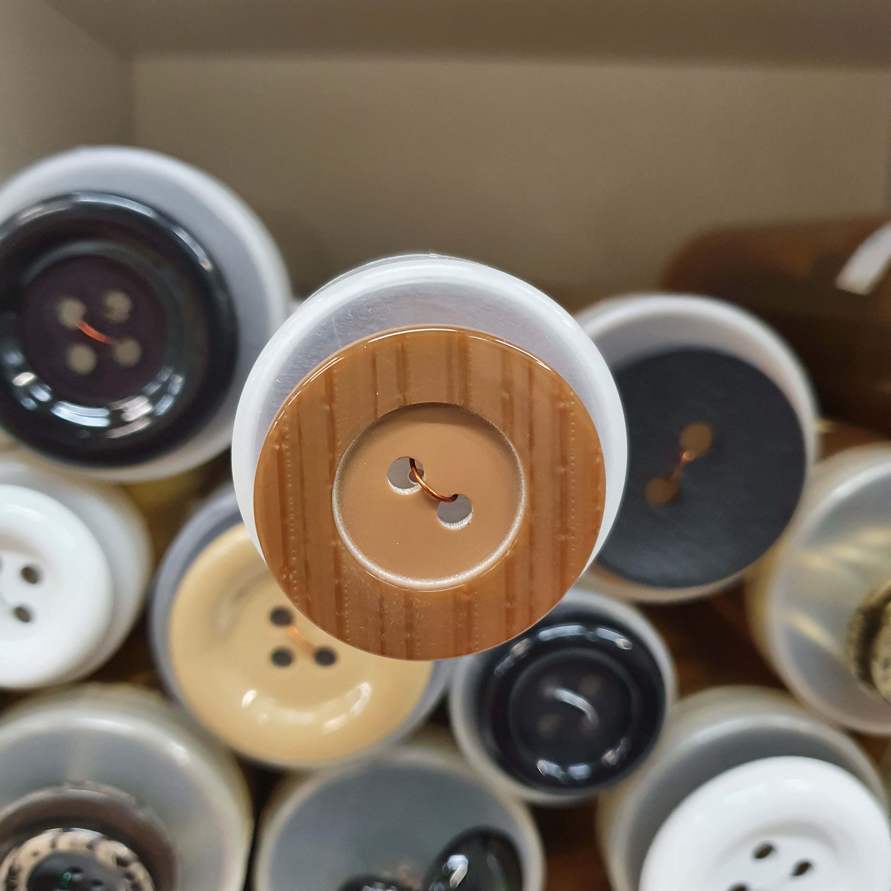 - Hnedastý dekoratívny gombík okrúhly cca 3,7cm