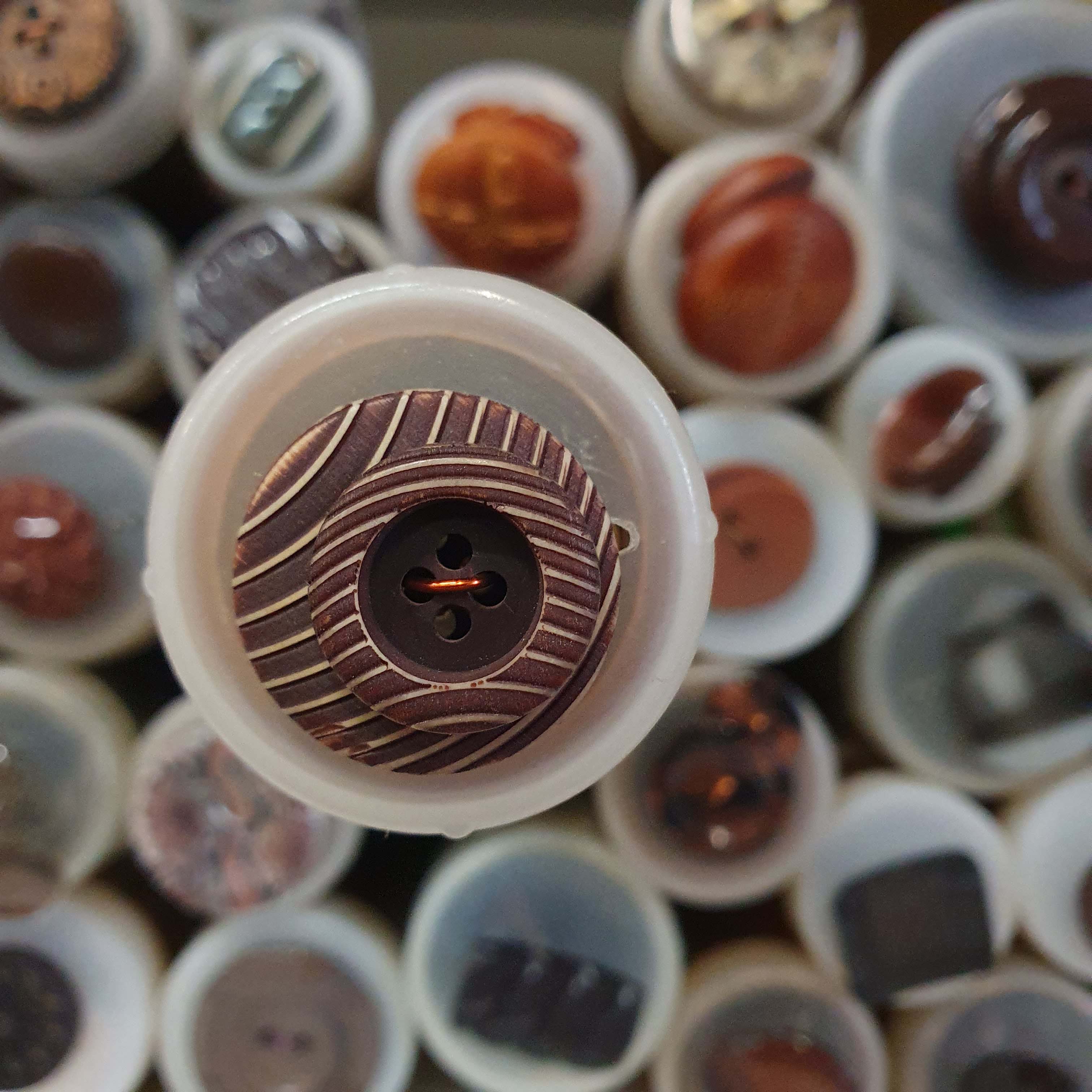 - Hnedastý dekoratívny gombík okrúhly väčší cca 2,3cm