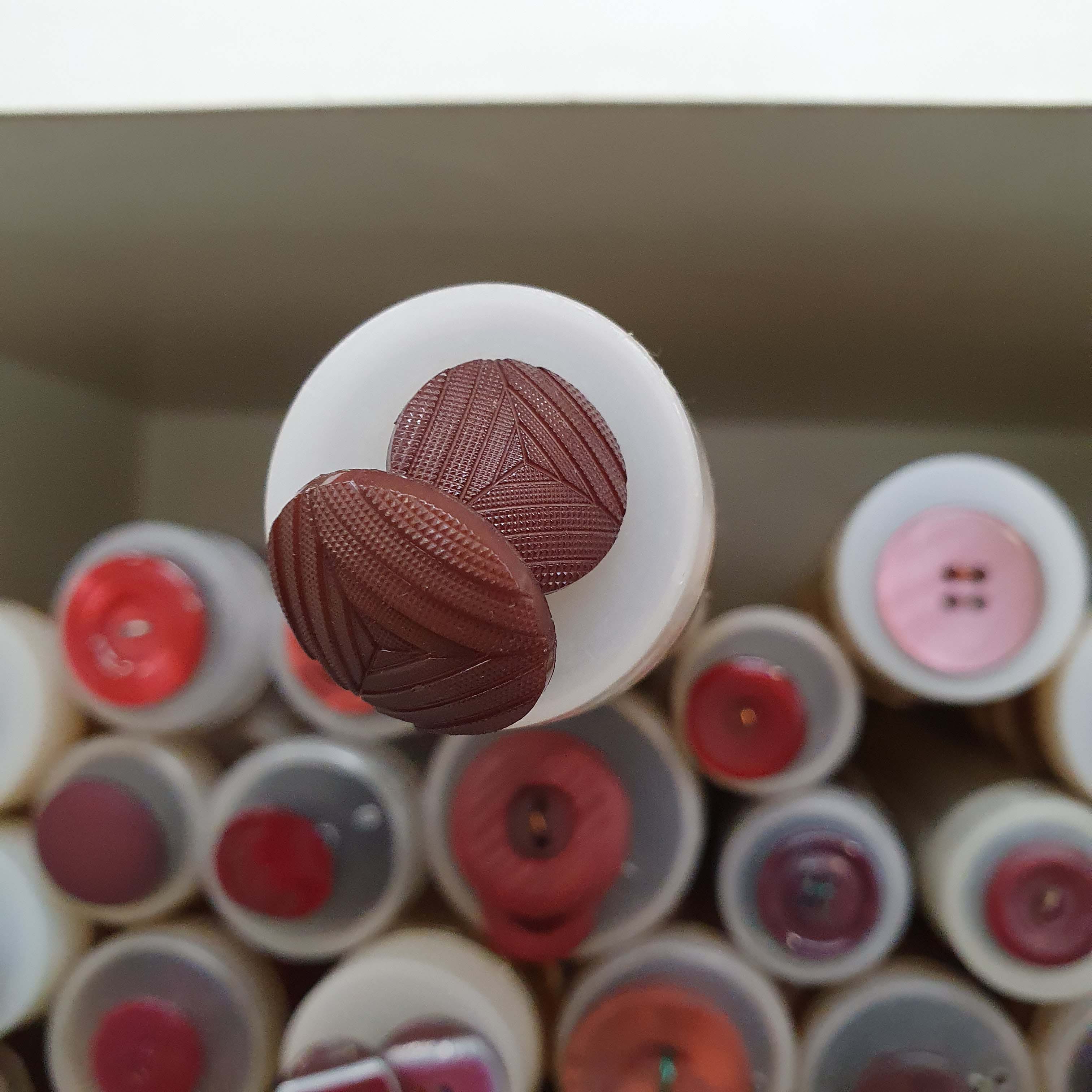 Hnedo bordový gombík okrúhly väčší cca 1,8cmSkladom0,30 EUR/ ks0,24 EUR bez DPH