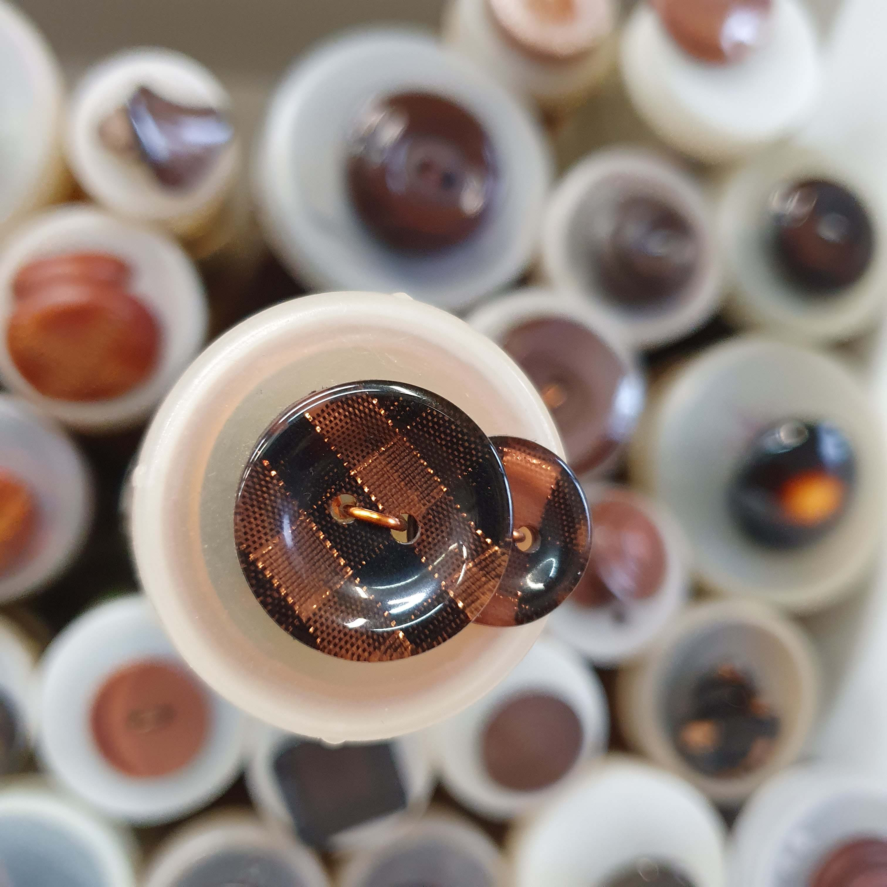 Hnedo čierny dekoratívny gombík okrúhly menší cca 1,5cmSkladom0,20 EUR/ ks0,16 EUR bez DPH