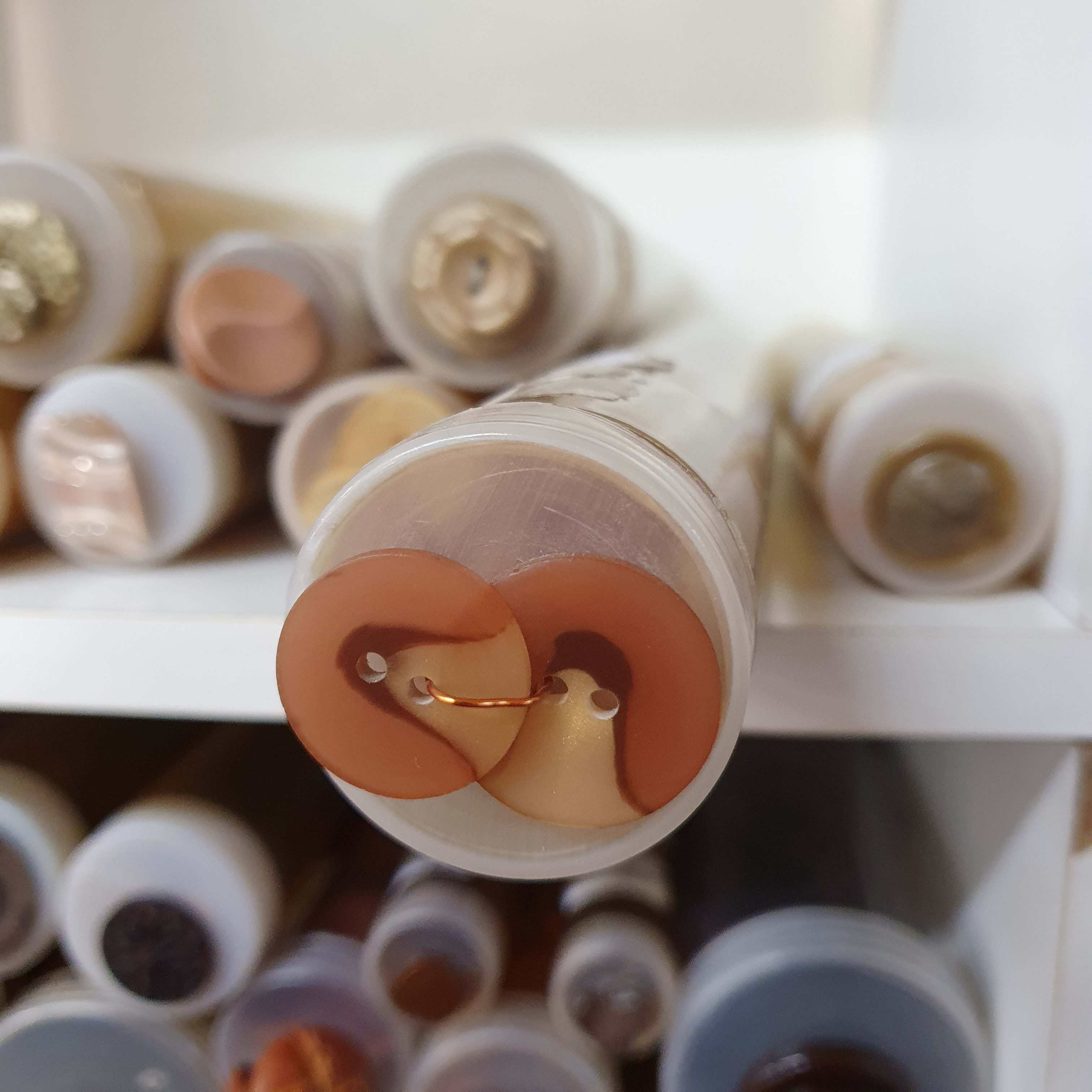Hnedo oranžový gombík okrúhly menší cca 2,1cmSkladom0,20 EUR/ ks0,16 EUR bez DPH