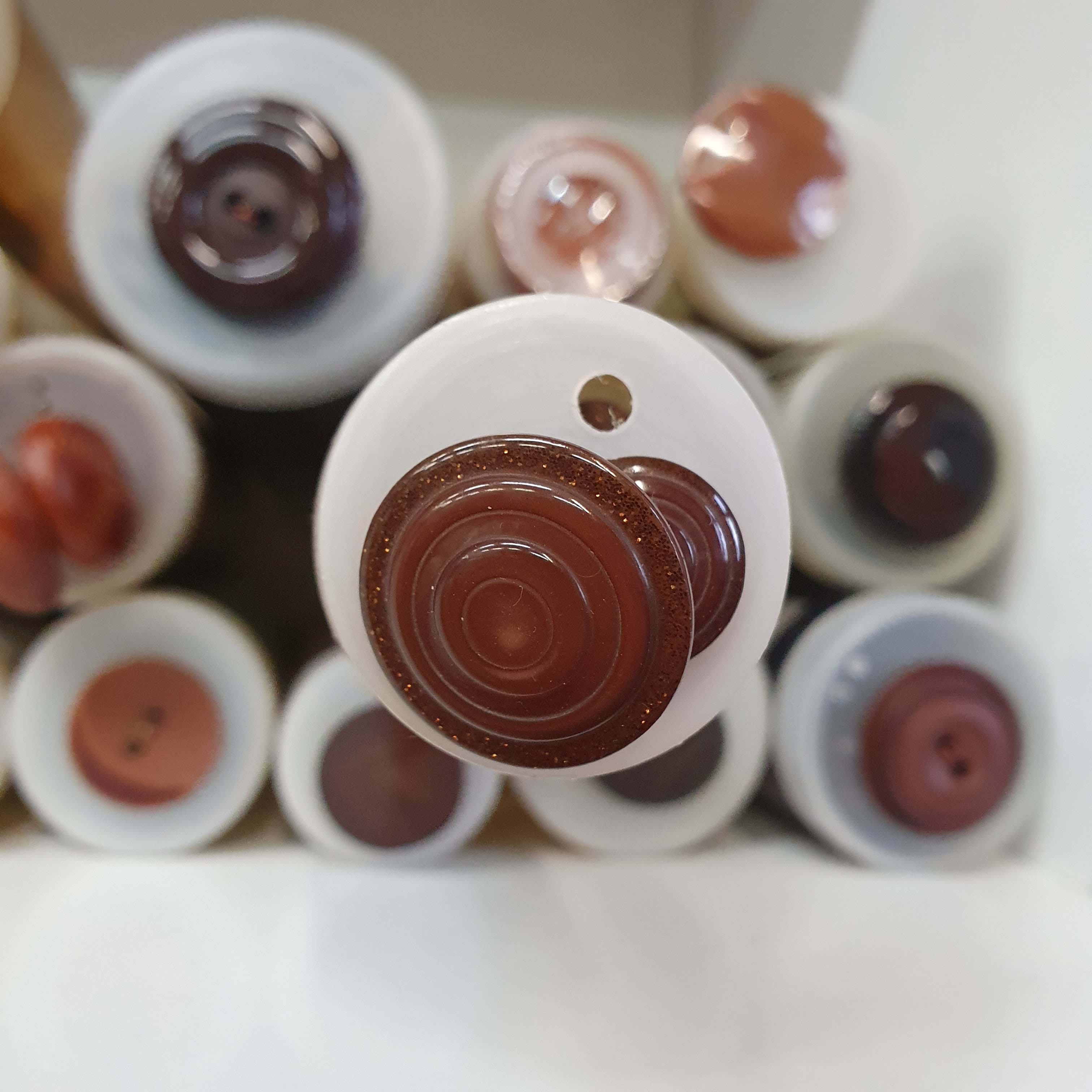 - Hnedý gombík okrúhly väčší cca 2,3cm