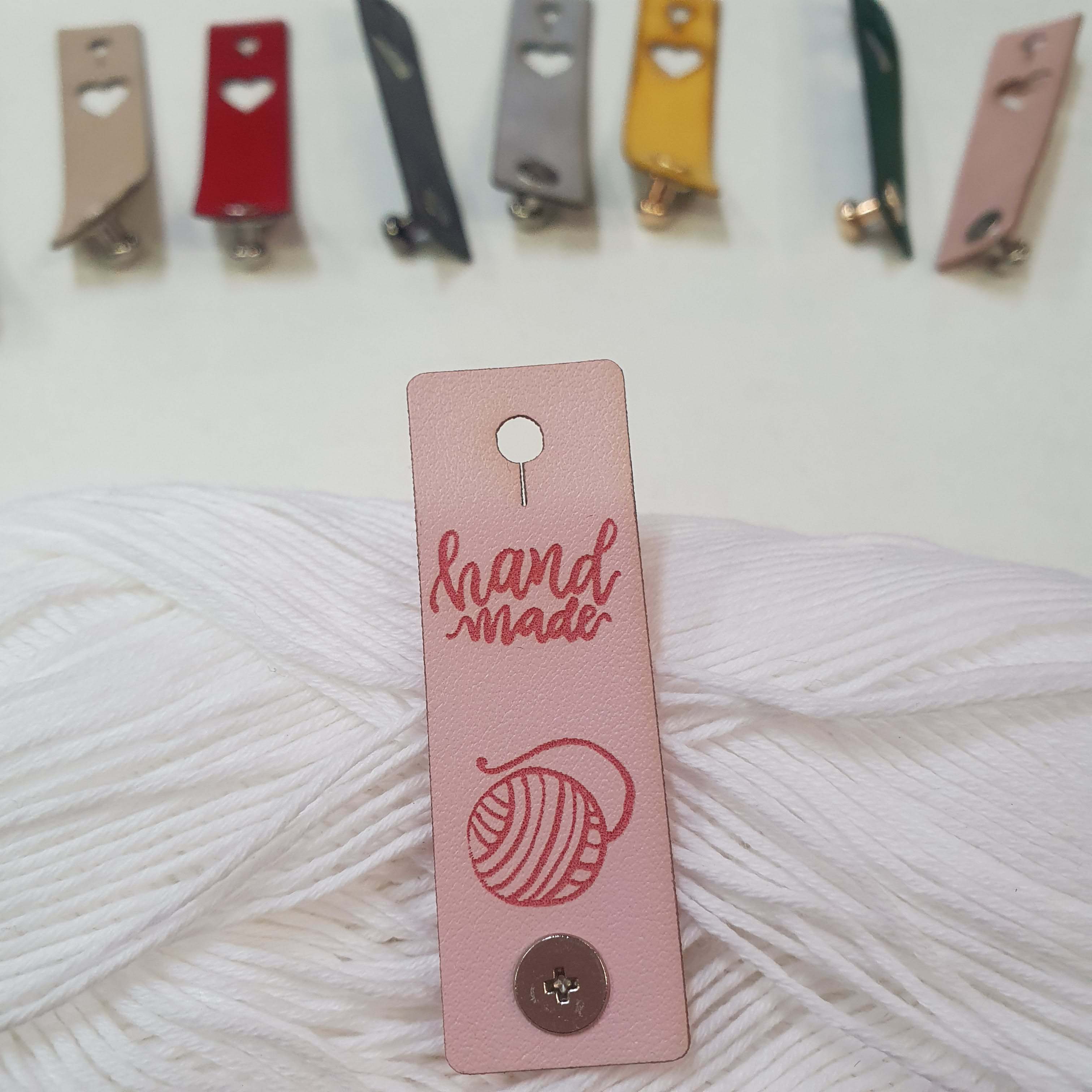 J8 - Svetlo ružový "handmade" štítok / nápis ekokoža s nikel šrubovacím nitom cca 2x6cmSkladom1,80 EUR/ ks1,46 EUR bez DPH