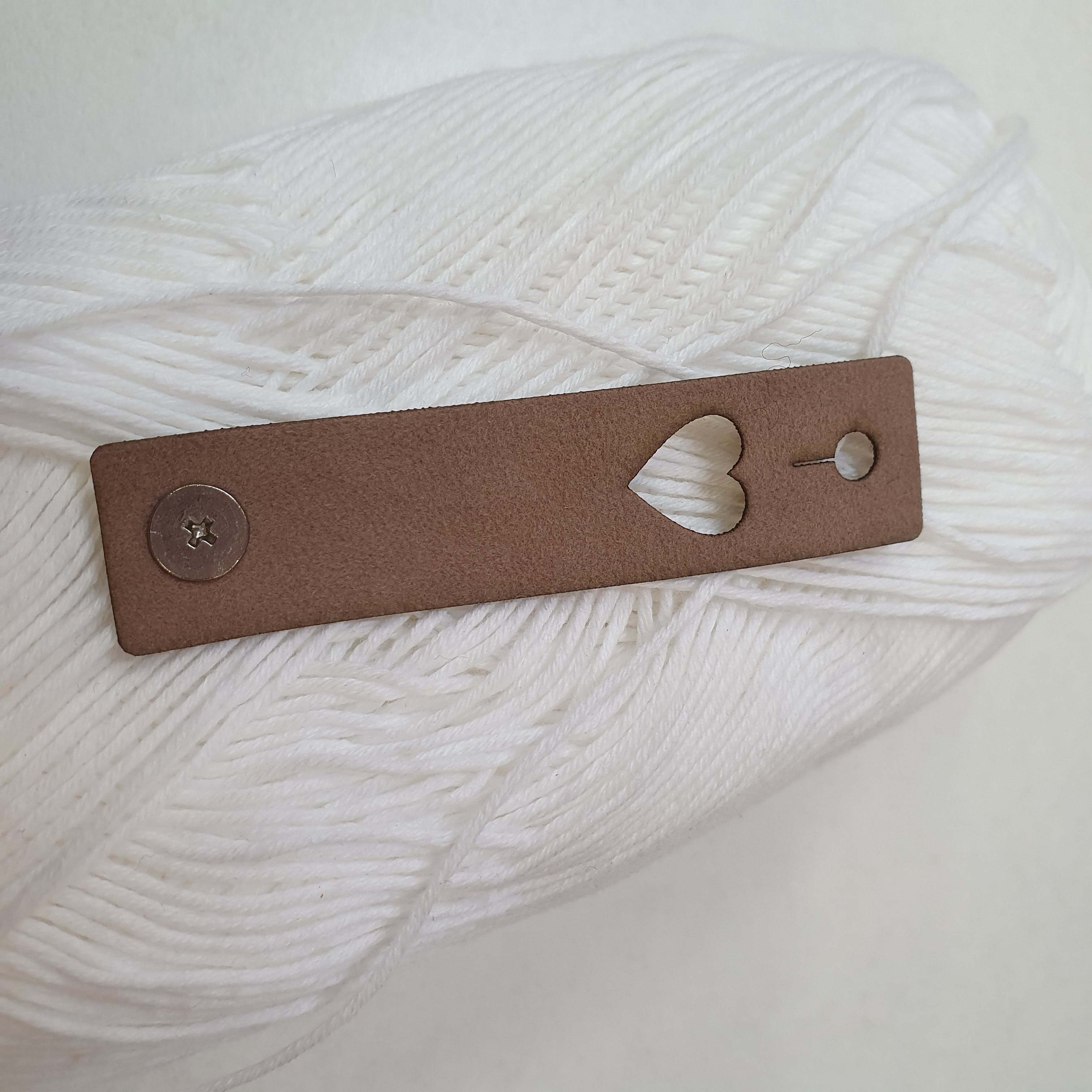 - K4 - Tmavšie kávovo bežové "srdce" štítok / nápis ekokoža so šrubovacím nitom cca 1,6x7cm