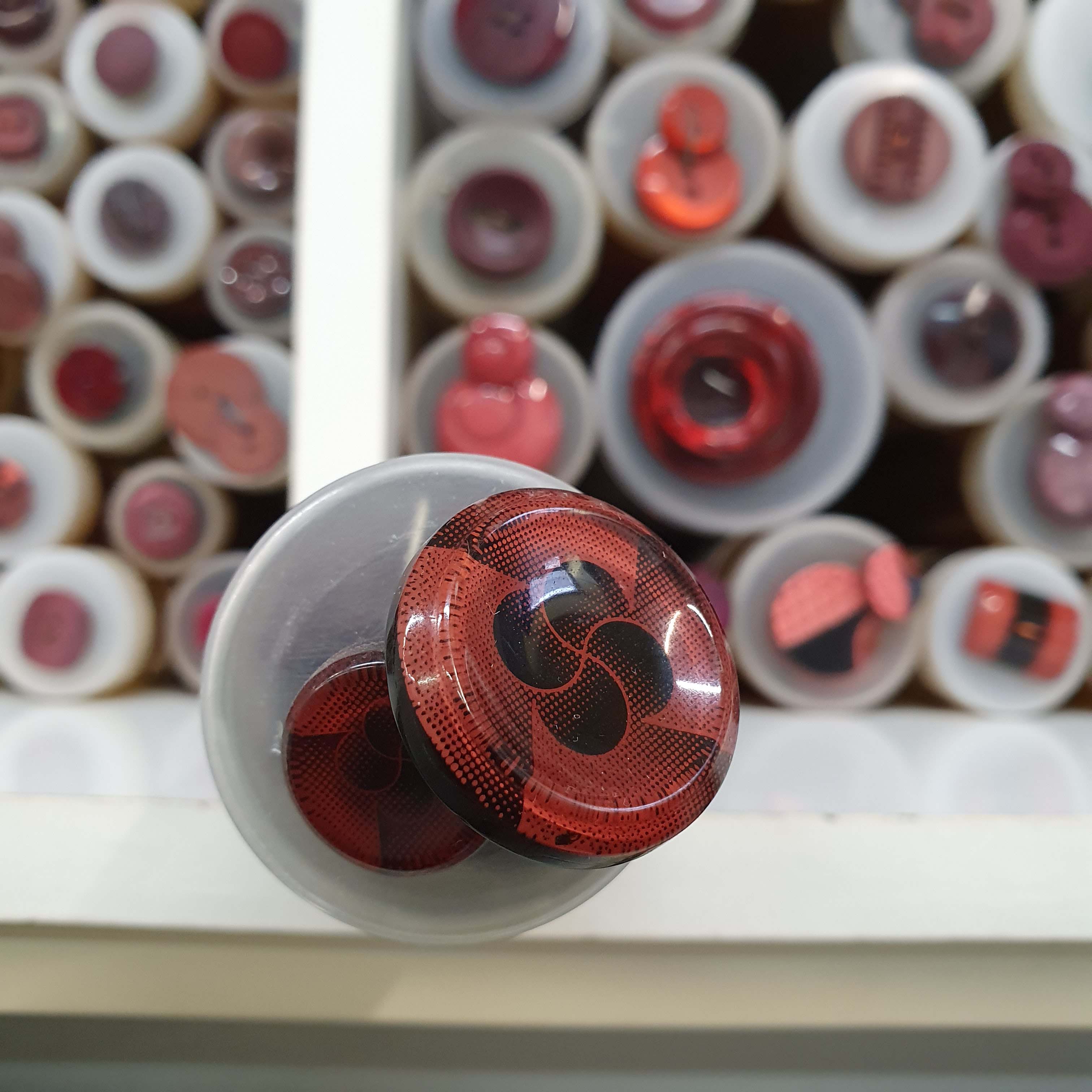 Kaleidoskop ozdobný gombík väčší červeno čierny cca 2,7cmSkladom0,50 EUR/ ks0,41 EUR bez DPH