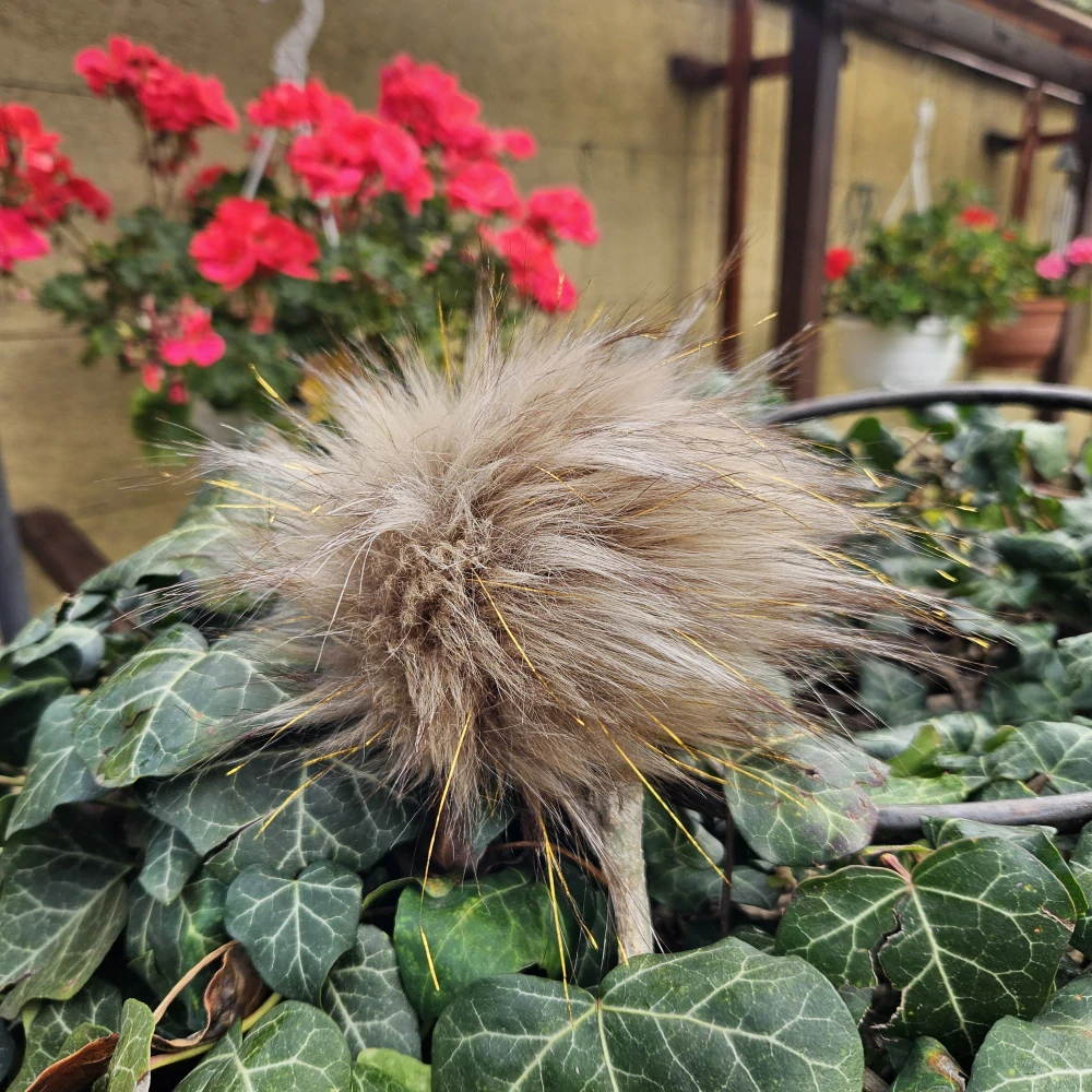 - L veľký cca 18 cm bežový so zlatým brmbolec na čiapku z umelej kožušiny