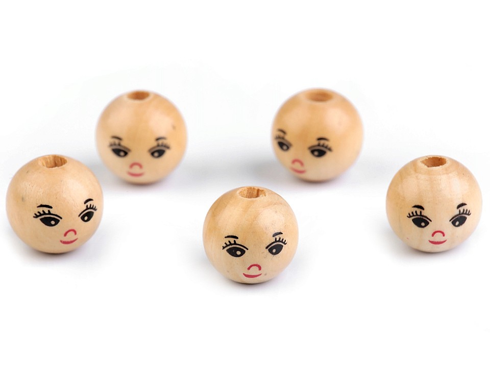 Lakovaná drevená korálka s tváričkou Ø14 mm / kus na dekorácieSkladom0,10 EUR/ ks0,08 EUR bez DPH