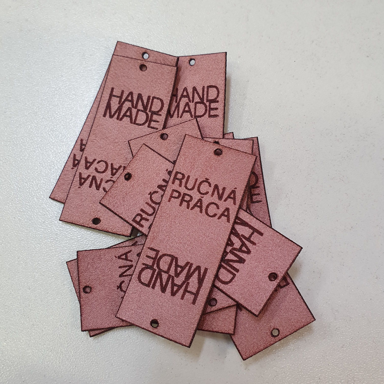 M1 - Ružový našívací "ručná práca" štítok / nápis ekokoža cca 2x5cmSkladom1,25 EUR/ ks1,02 EUR bez DPH
