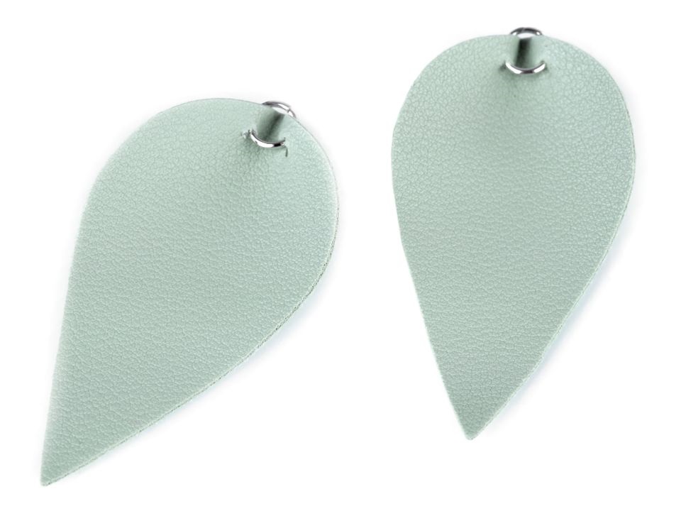 Mentolovo zelený list / kvapka z eko kože s krúžkom 3,4 x 6,2 cm / KUSSkladom0,30 EUR/ ks0,24 EUR bez DPH