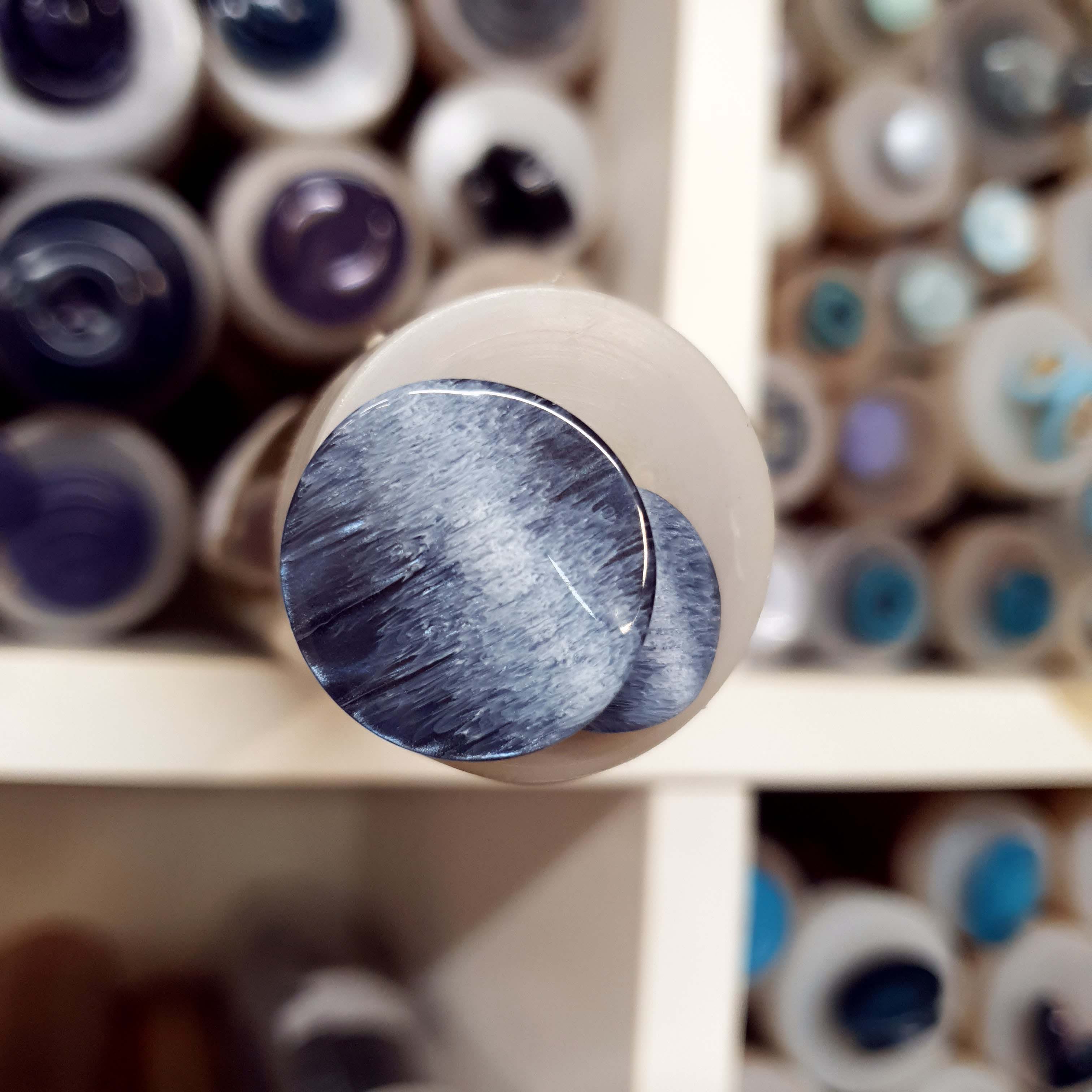 Modro biely gombík okrúhly menší cca 1,5cmSkladom0,25 EUR/ ks0,20 EUR bez DPH